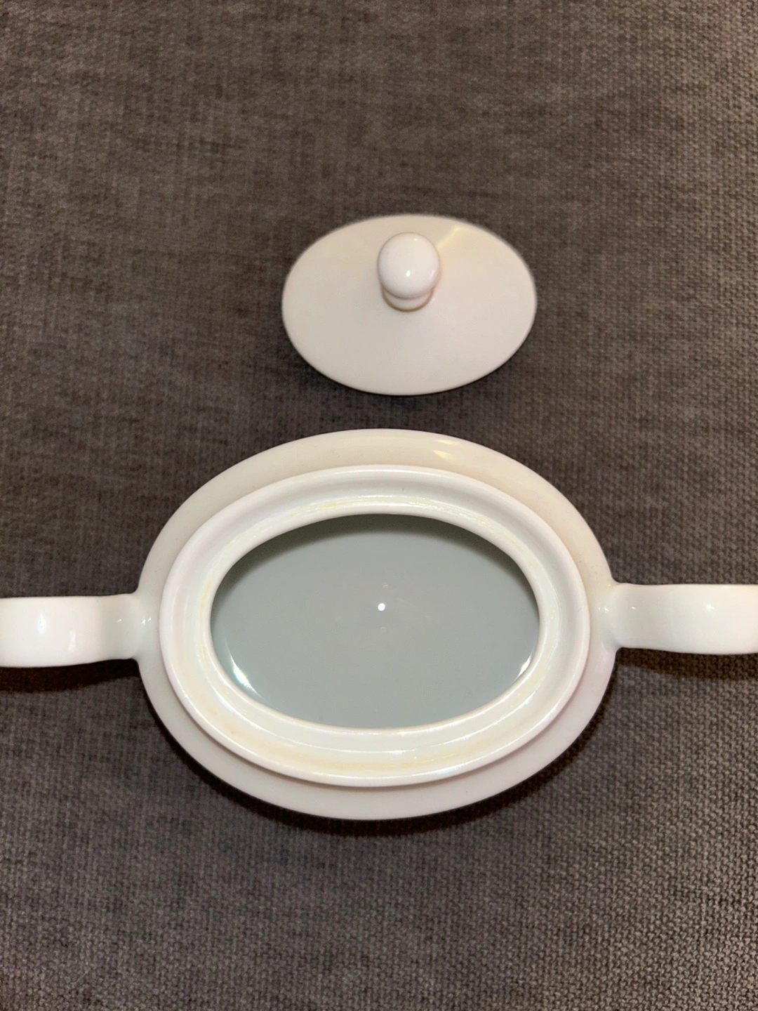 Fine porcelain, made in Germany dish washer safe sugar bowl with lid & handles in mint condition.