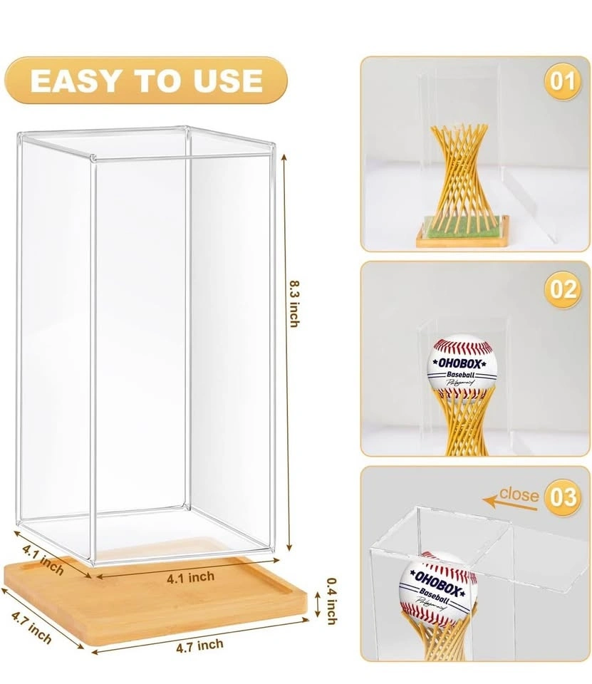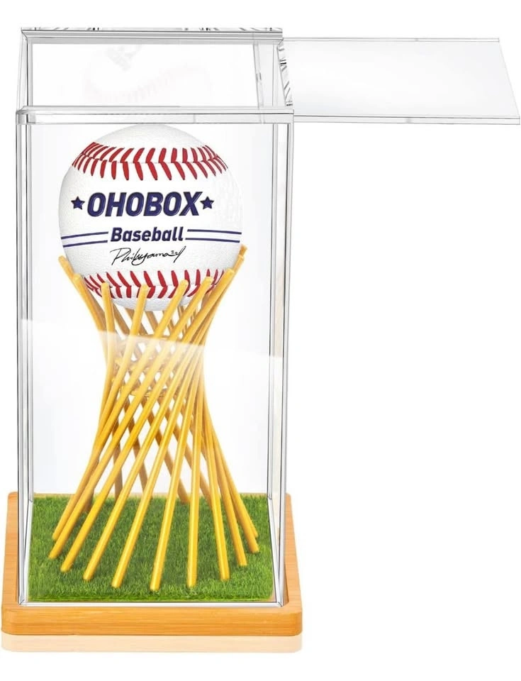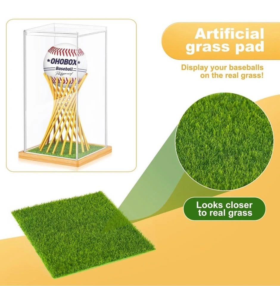 Improved baseball cases for balls and metal support for baseball, acrylic baseball case with UV protection with artificial grass pad, baseball case display