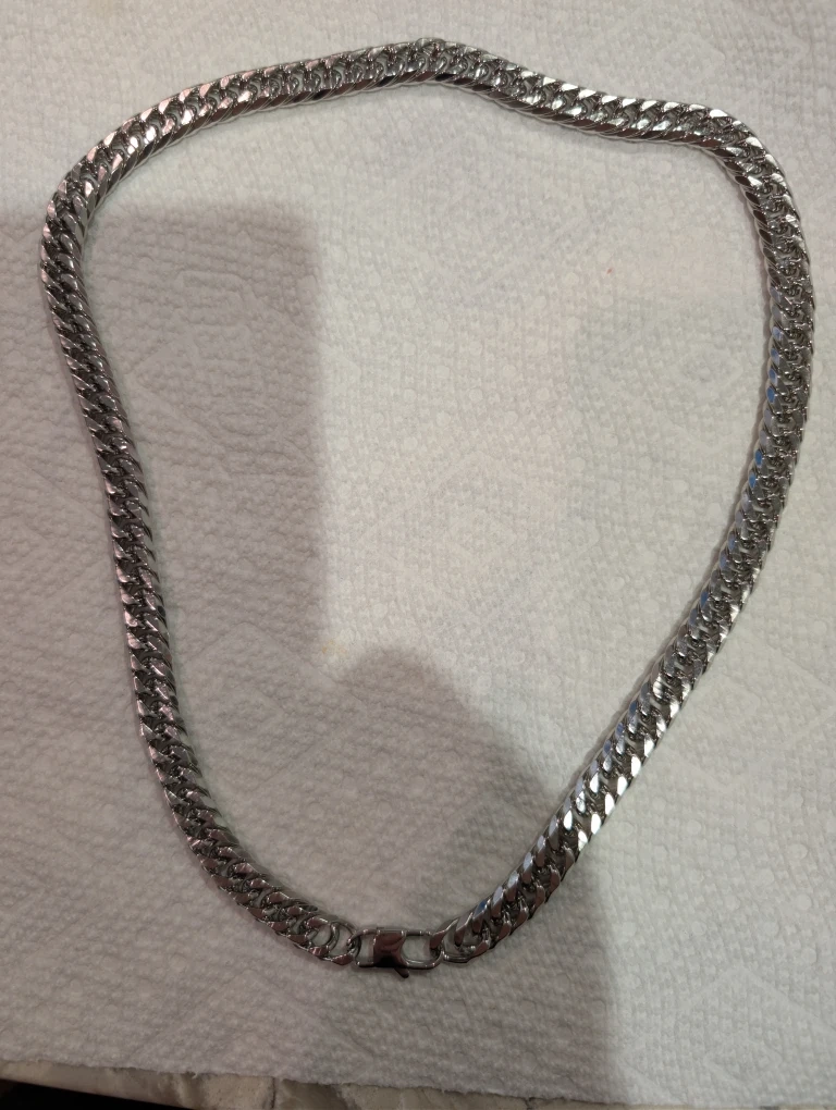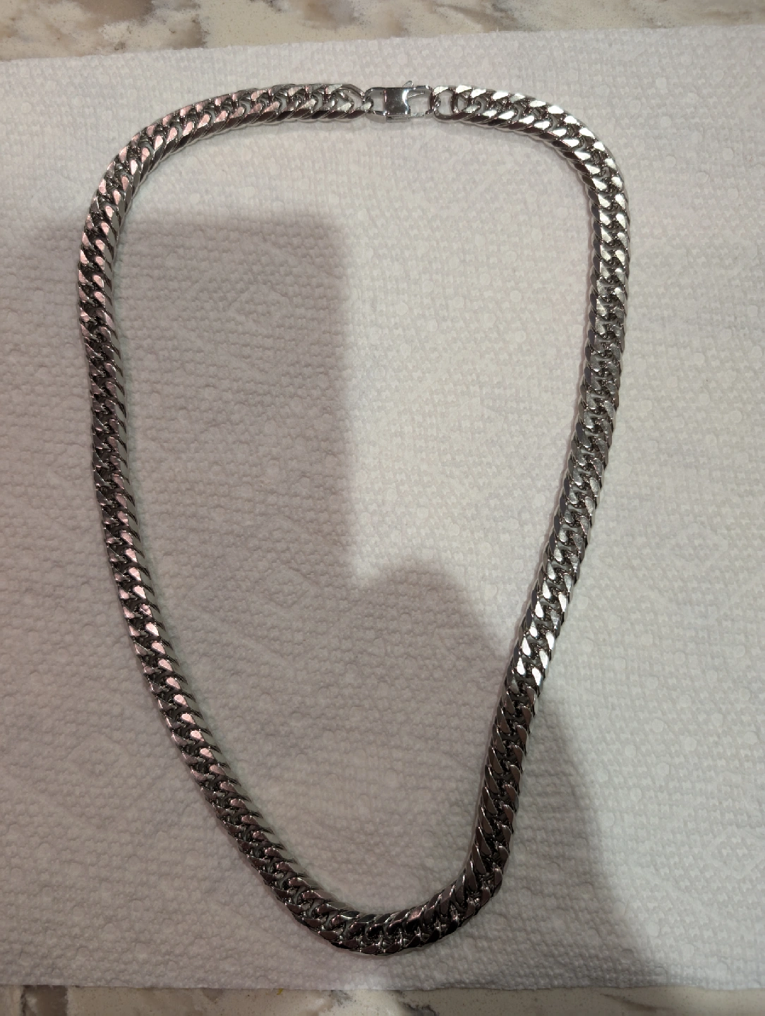Selling a silver-colored Cuban link chain necklace. It's in great condition and ready to add some style to your look!