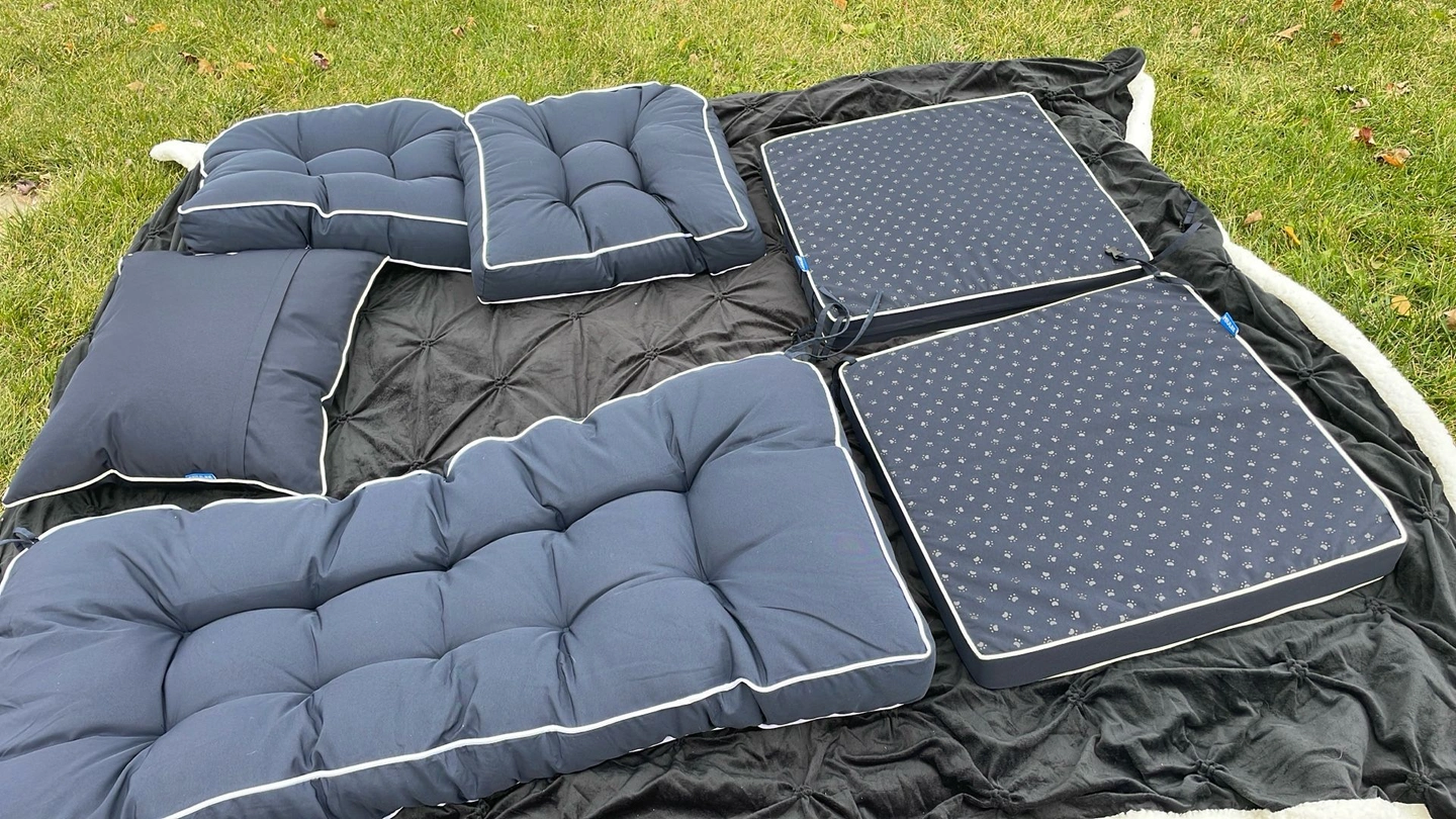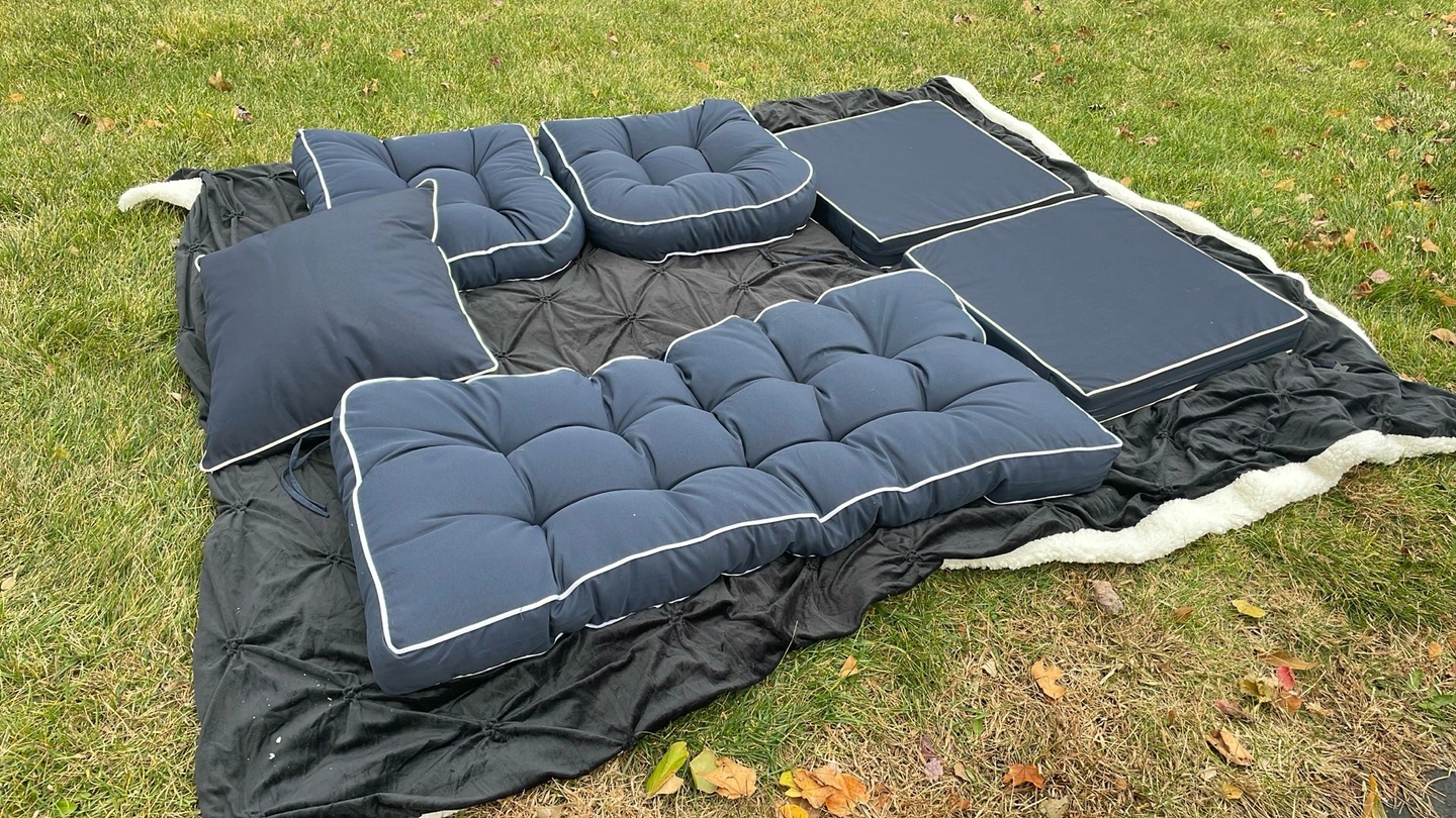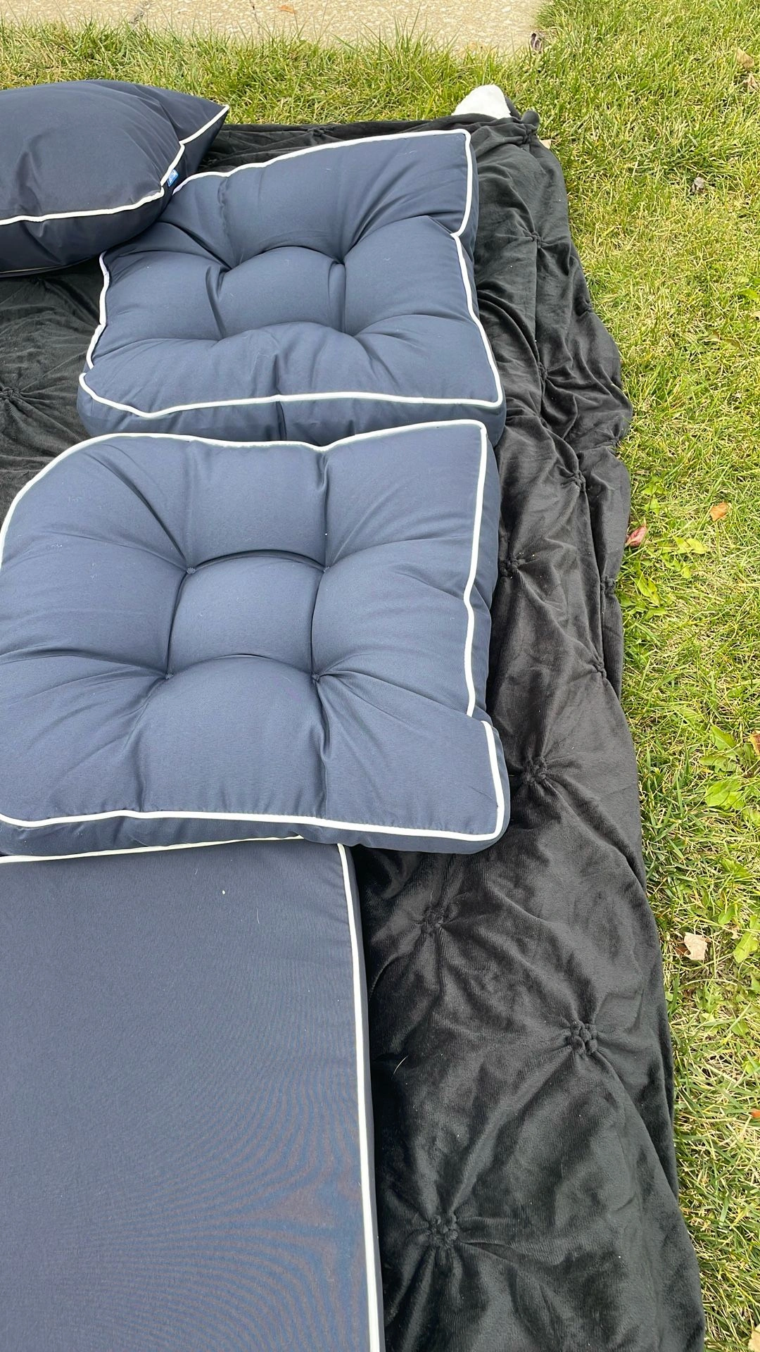 606 Navy outdoor patio cushions. Porch pick up in Joliet near McWethys.