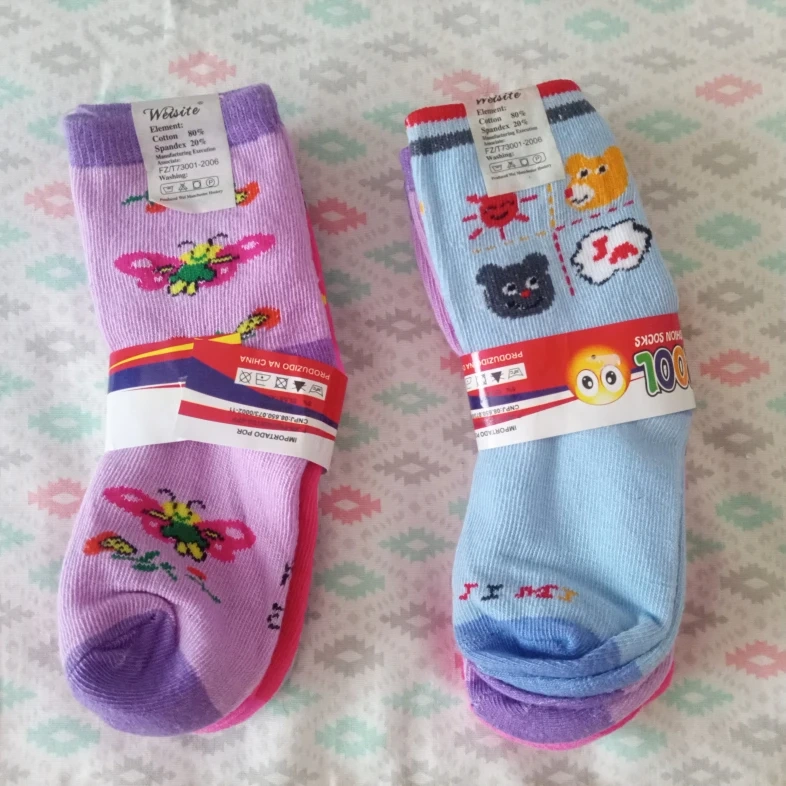 1000+Cotton colorful socks. Purple, pink and blue. 2 pairs of each. Very cute and comfortable. Shoe size 4-7