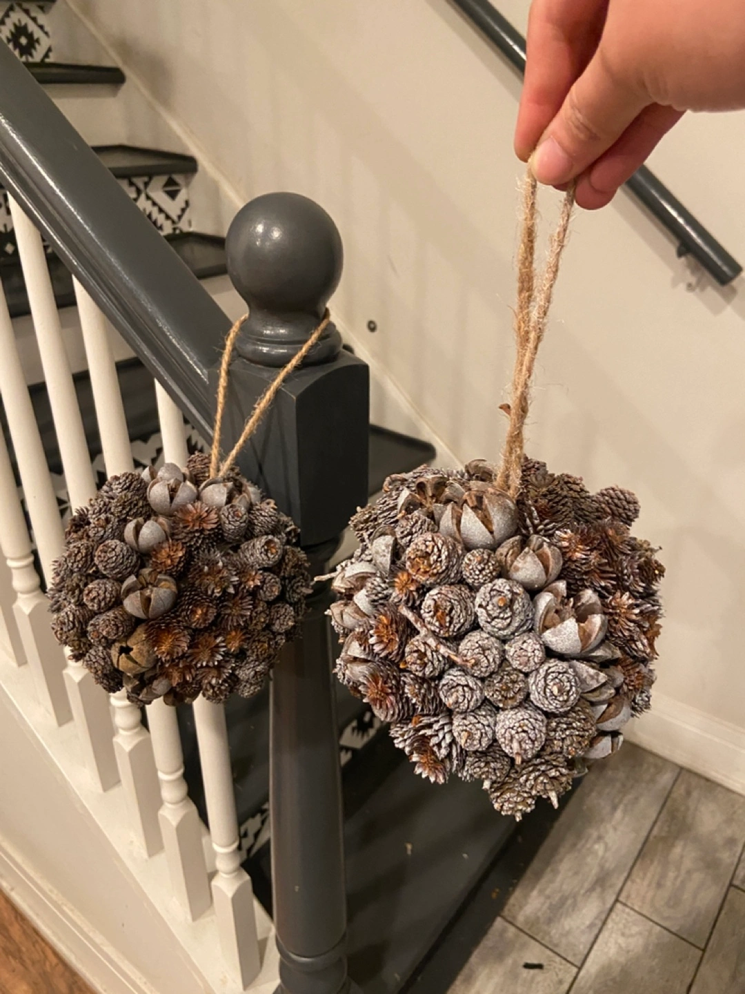 Selling a set of two pine cone ball ornaments. They're perfect for adding a rustic touch to your home decor, especially during the holidays! They are in great condition and ready to hang.