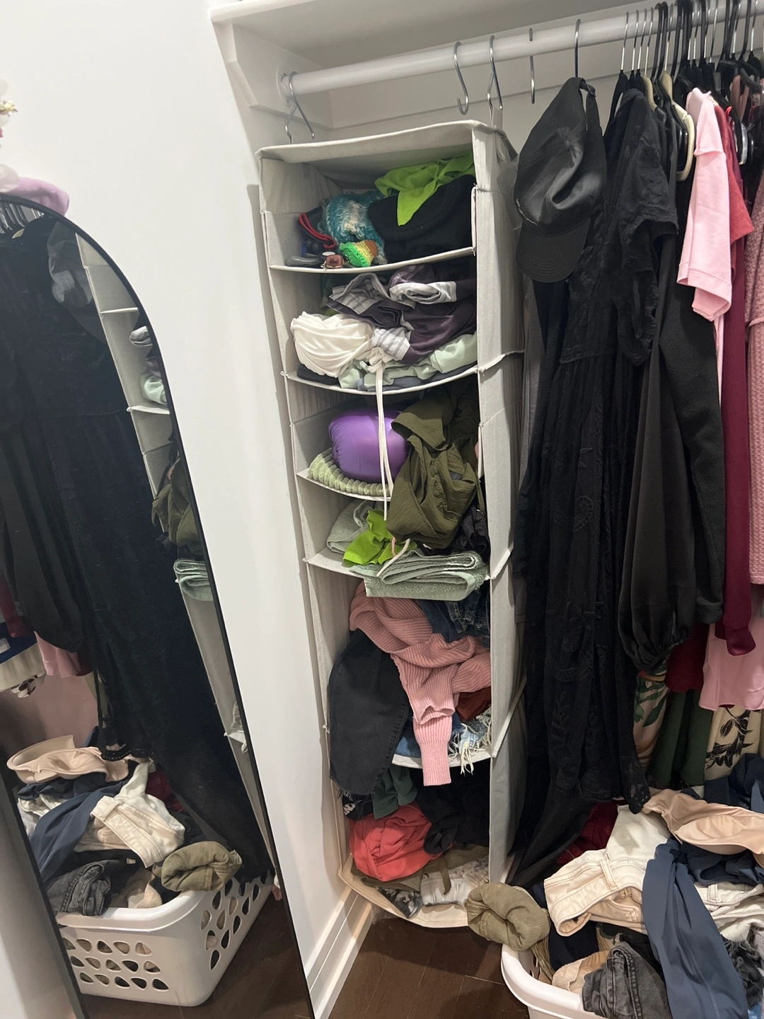 78A closet hanging organizer. It offers multiple shelves. Great for organizing your clothes and easing your mind. Brightroom/Target perfect for clothes or linen