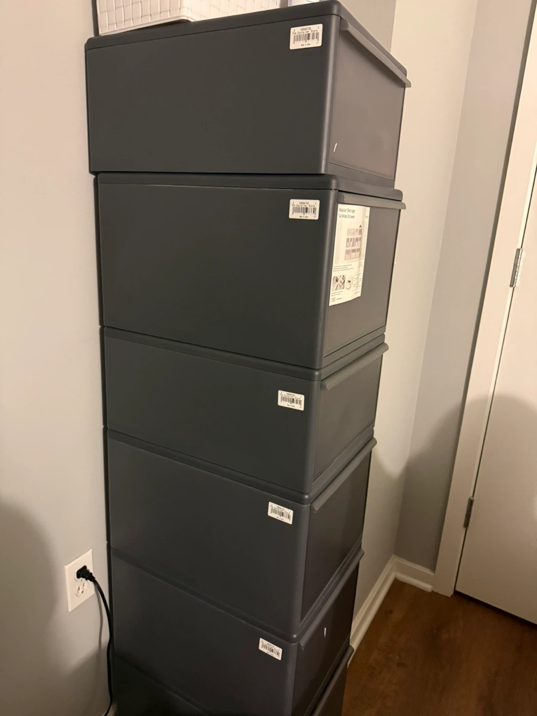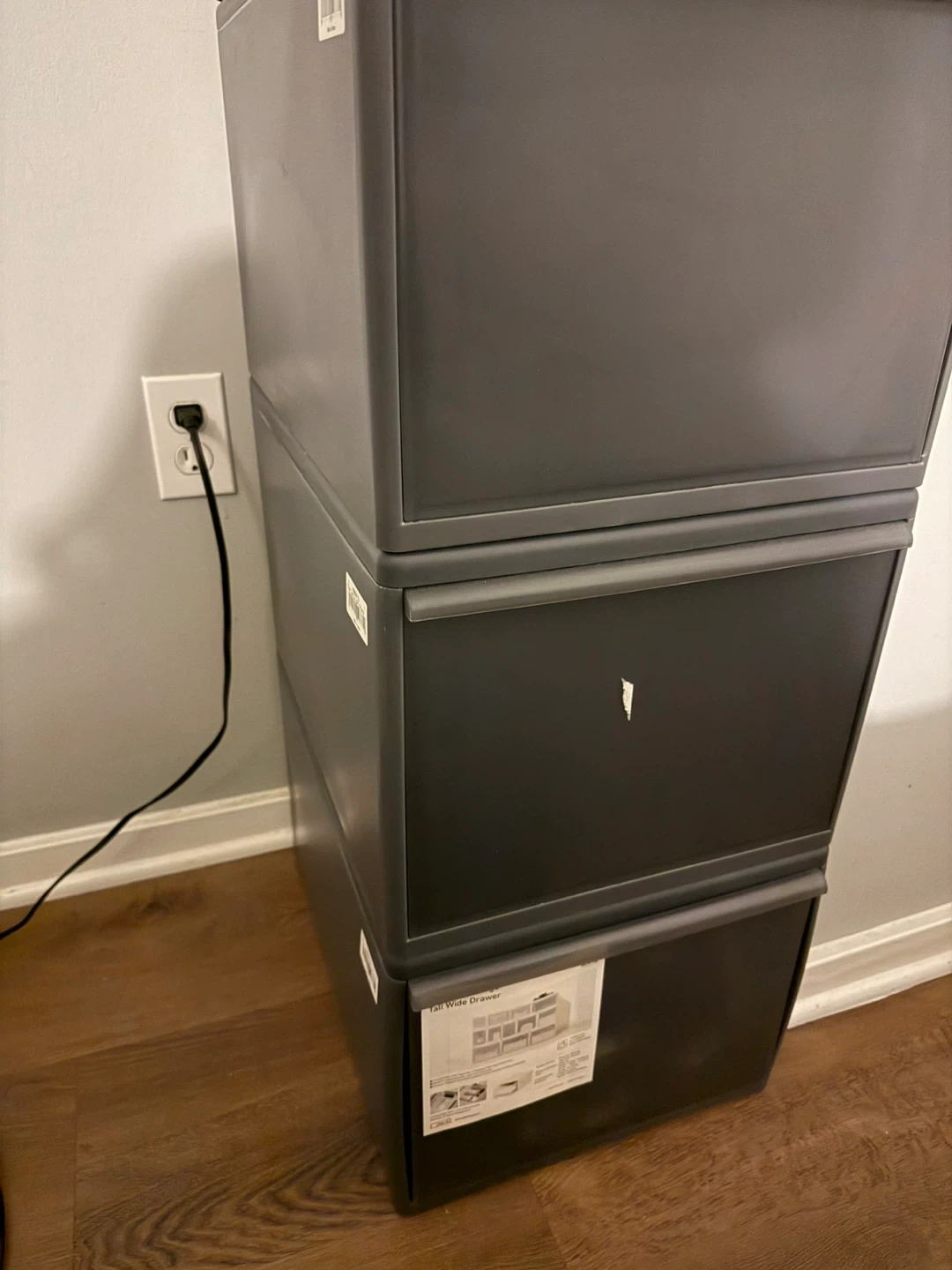 10Bought from container store Used for very less time Selling because I am moving to a different state 2 drawers same size (length 18-1/4, width 13-3/8, height 8-3/8) 4 drawers same size (length 18-1/4, width 13-3/8, height 11) no scratches, marks, stains Looks like new