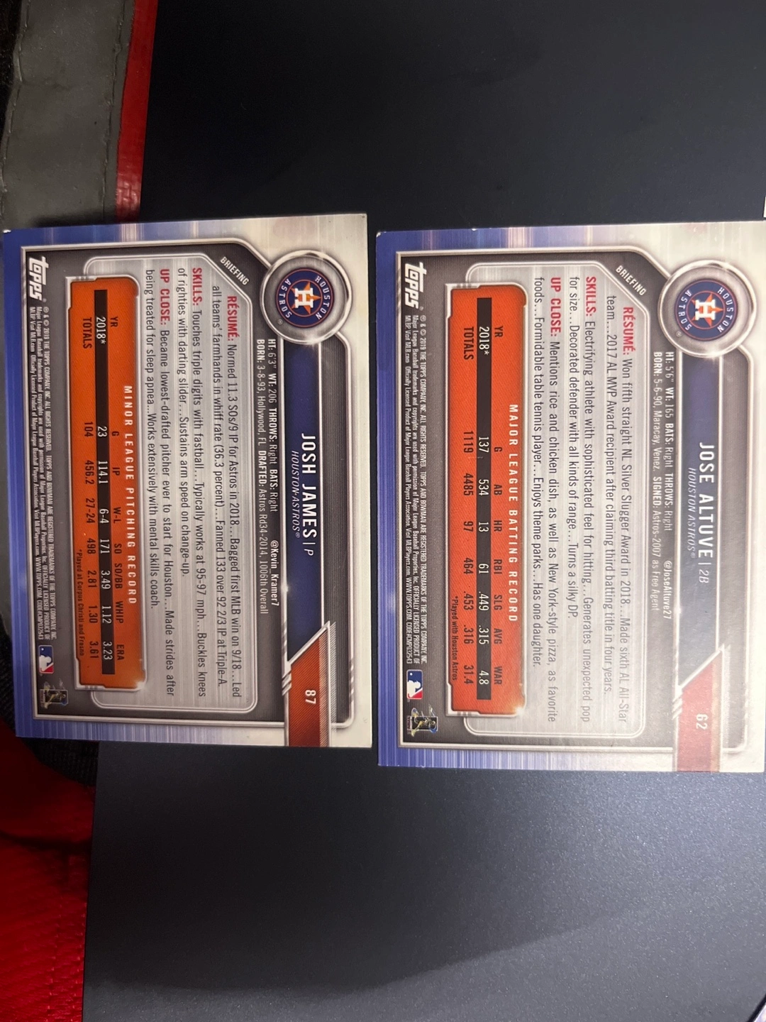 65Selling two baseball cards featuring Josh James and Jose Altuve. Great for any baseball fan or collector!