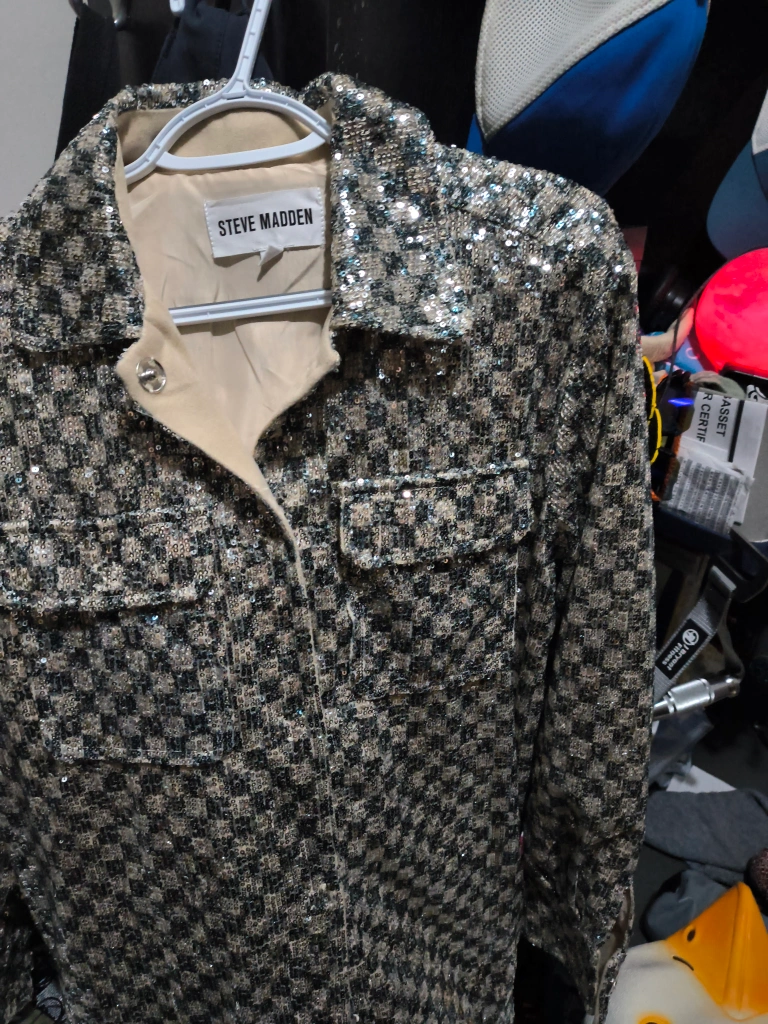 Selling a cute Steve Madden sequin tweed jacket! It's in great condition and ready for a new home. Perfect for adding a touch of sparkle to any outfit