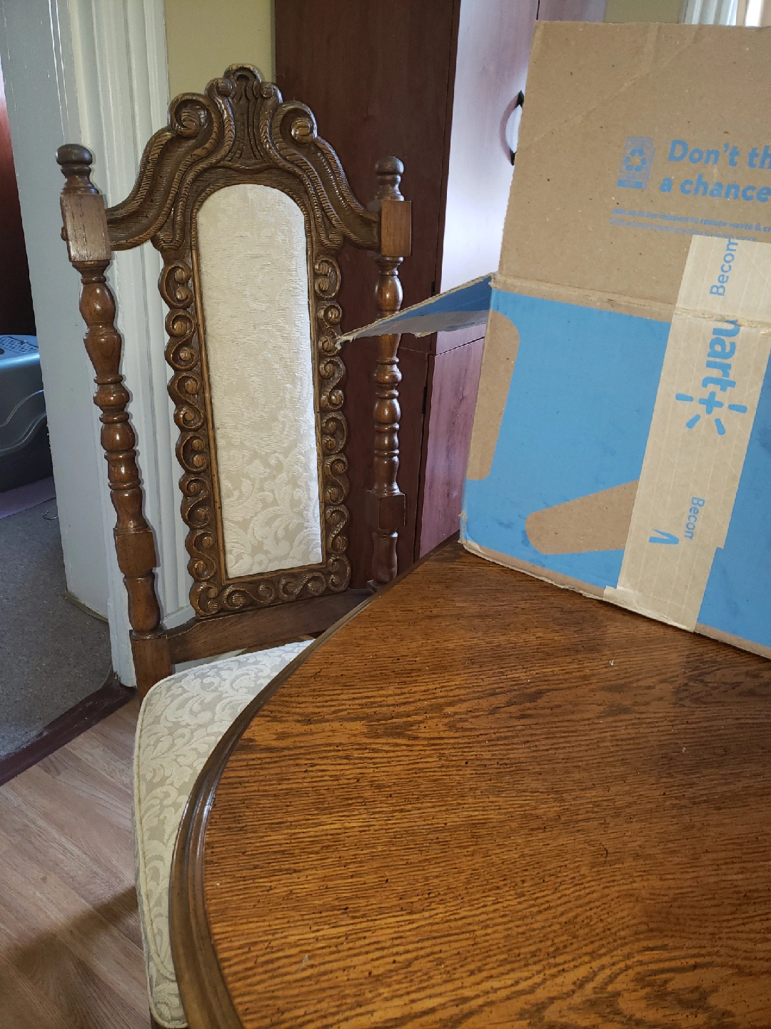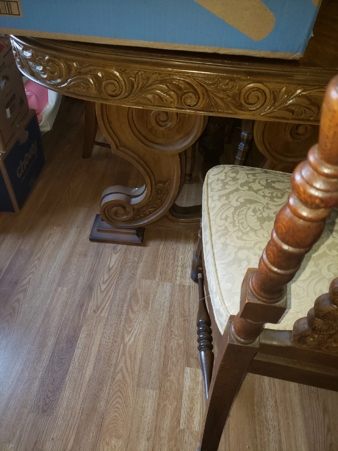 Accepting offers. Heavy mahogany hand carved table & 4 chairs, real wood, very heavy with extension. Accepting offers Will respond to only verified accounts.