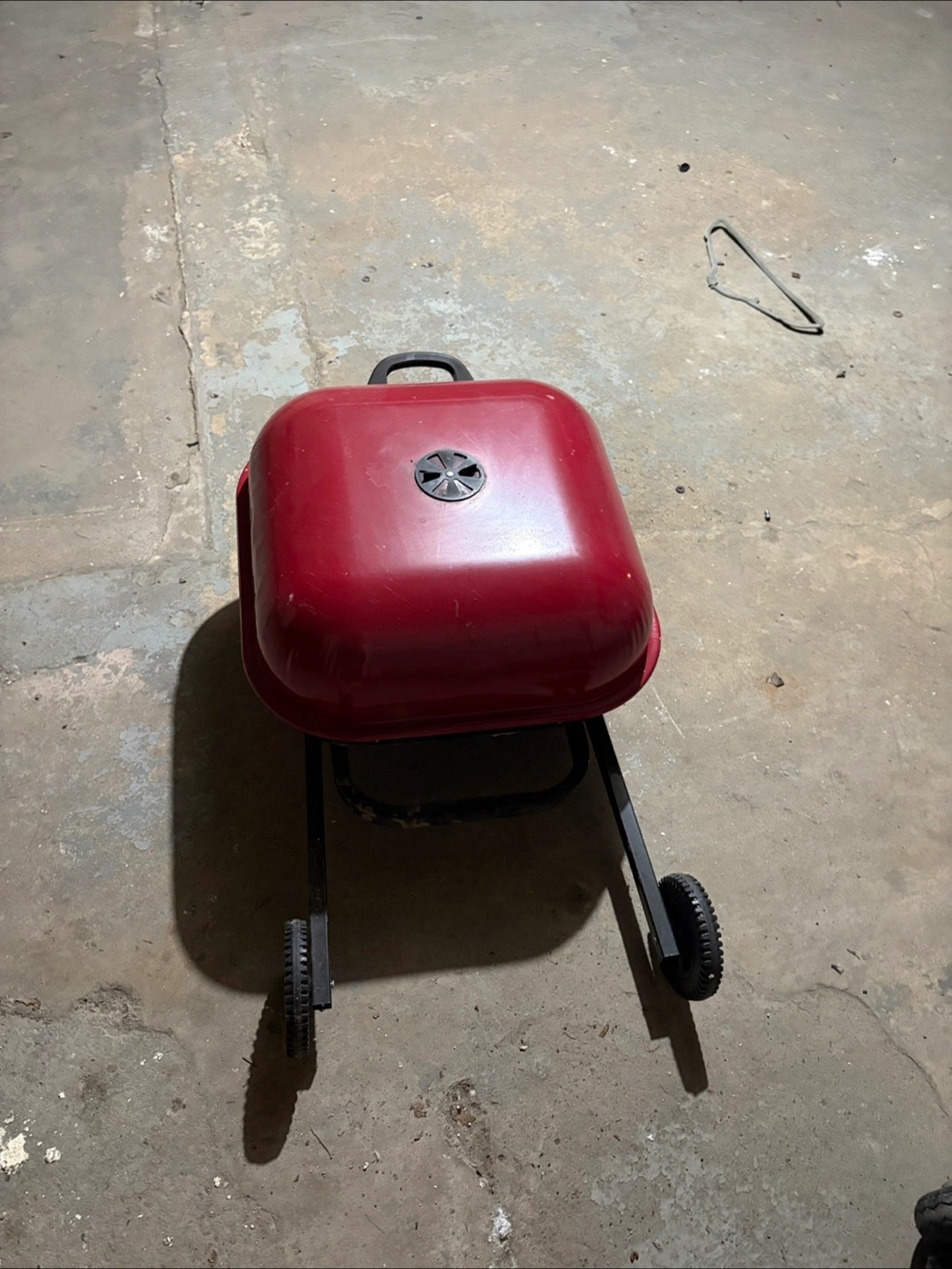 83Walkabout Americana grill in red. It's in used condition, but still works great for grilling! Comes with utensils