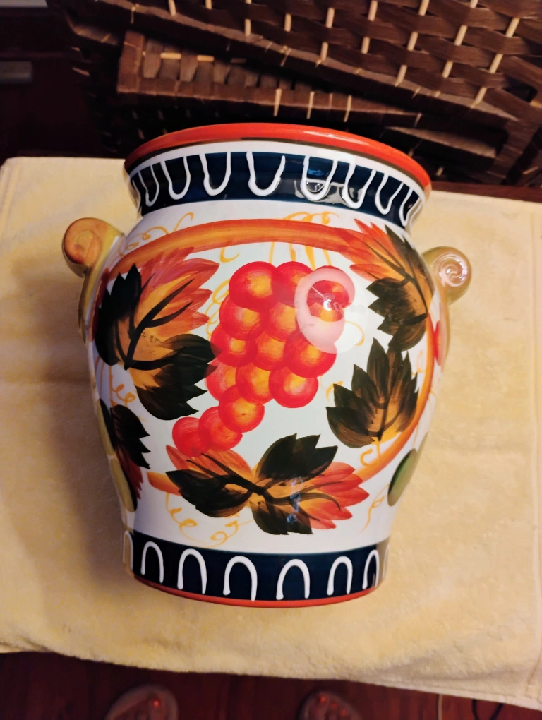 680🥕Selling this beautiful hand-painted ceramic vase! It features a lovely grape design and would look great as a decorative piece in any room