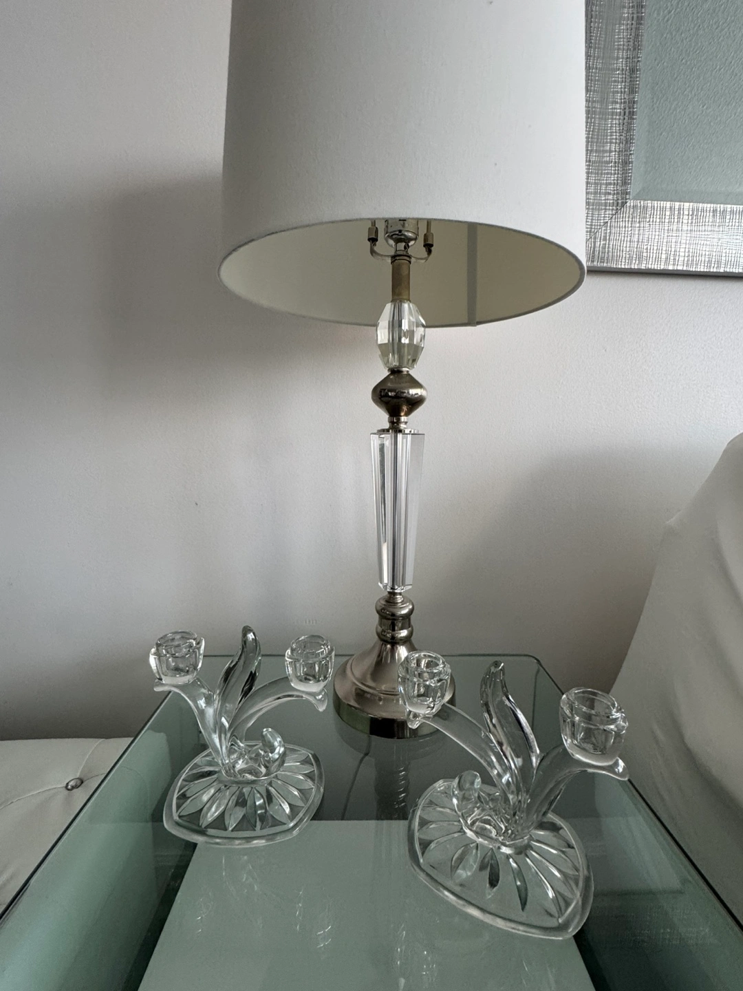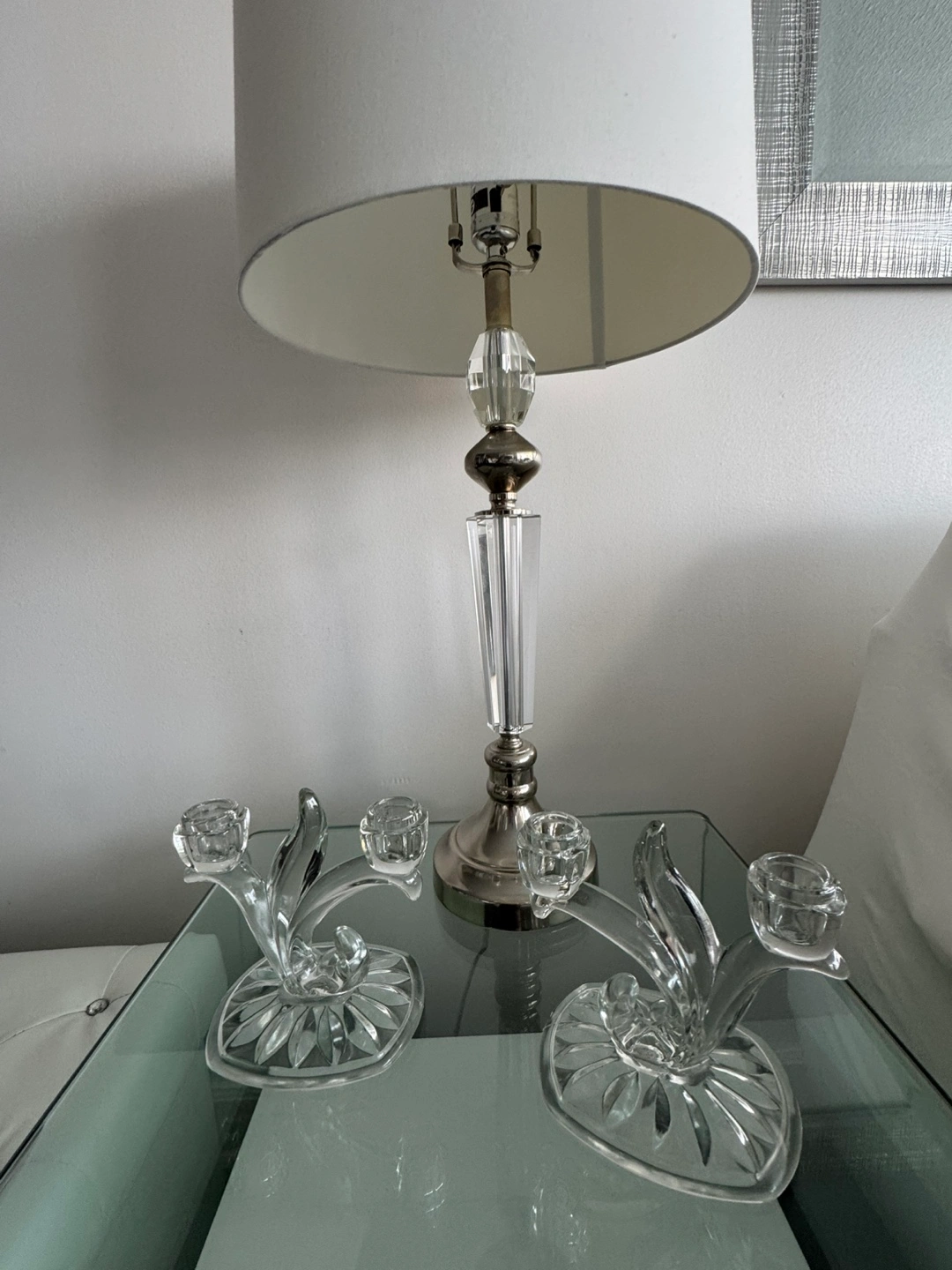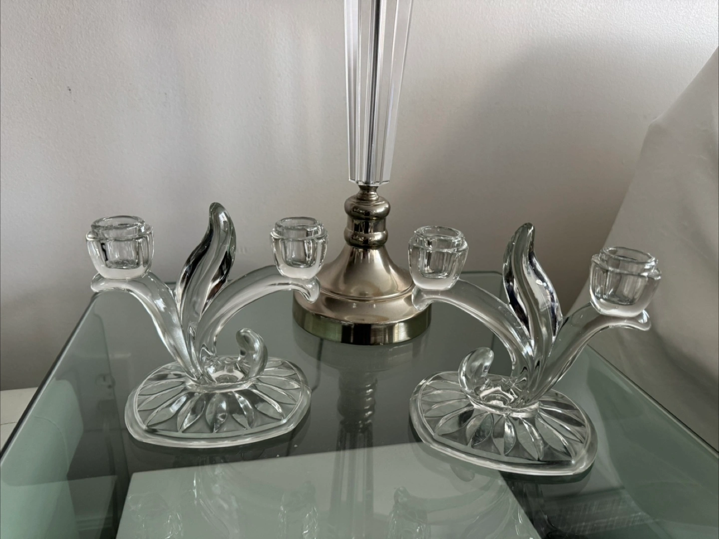 Glass Candlestick Holders - Set of Two