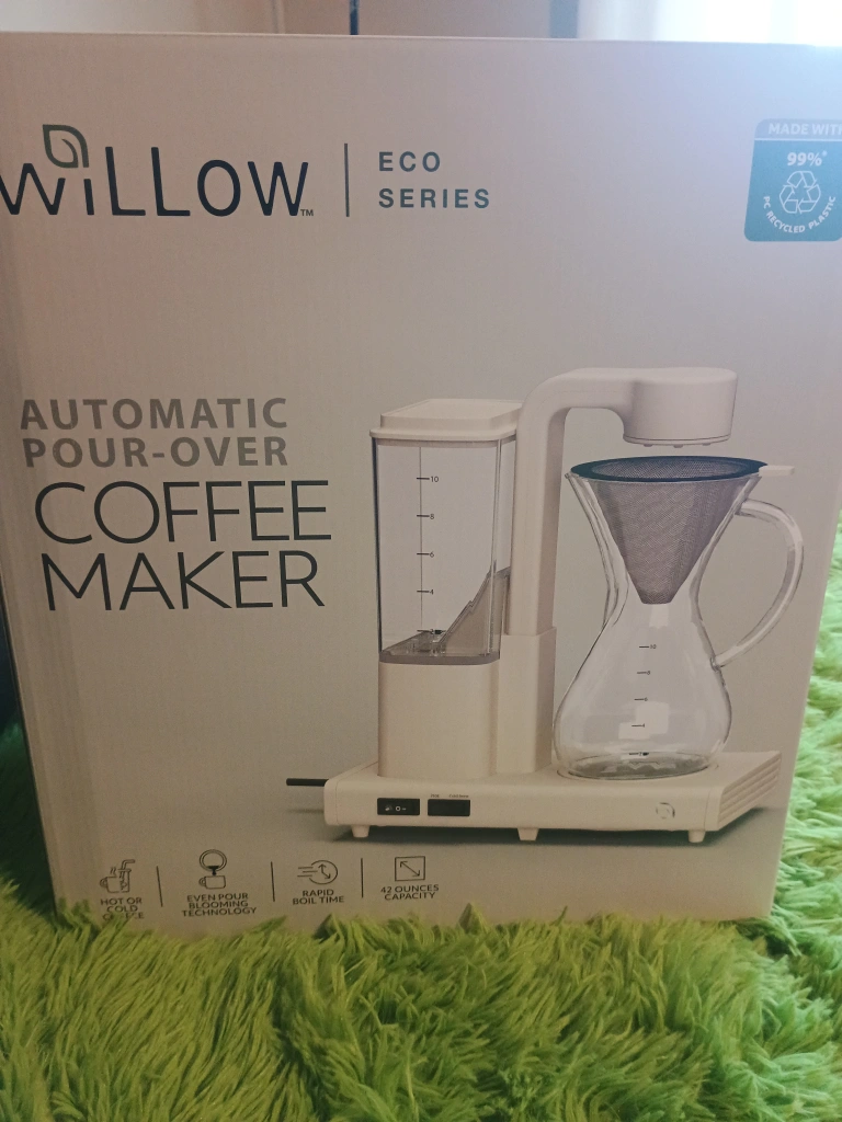 Selling a Willow Automatic Pour-Over Coffee Maker from the ECO Series! It features even pour blooming technology and rapid boil time. It has a 42-ounce capacity and is made with 99% recycled plastic