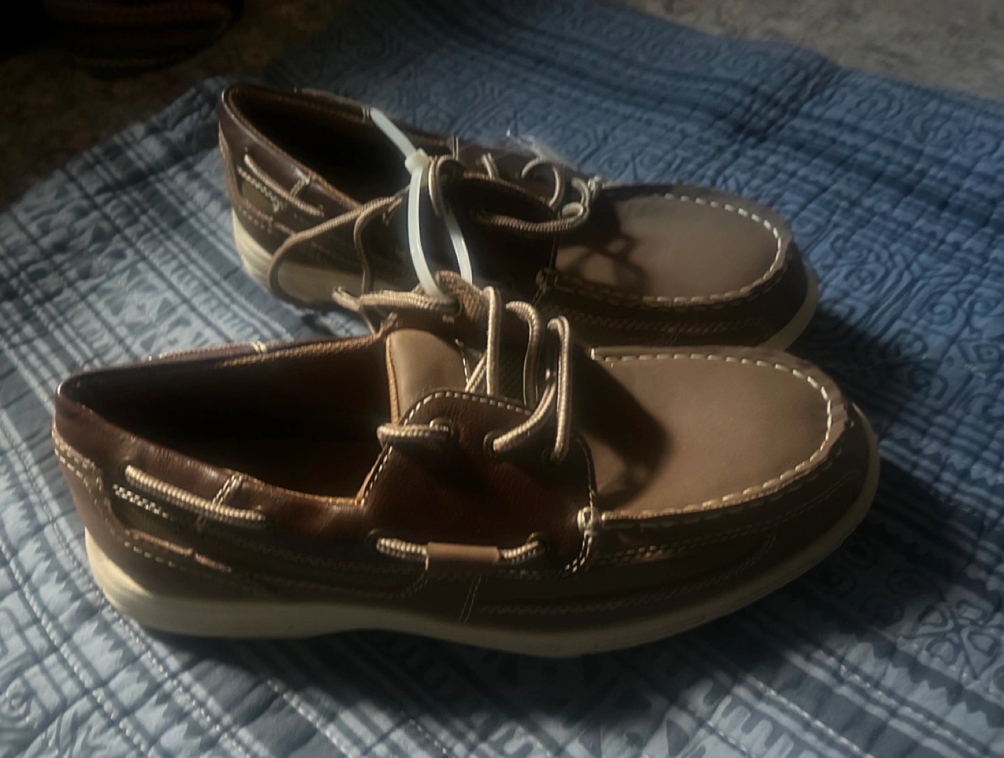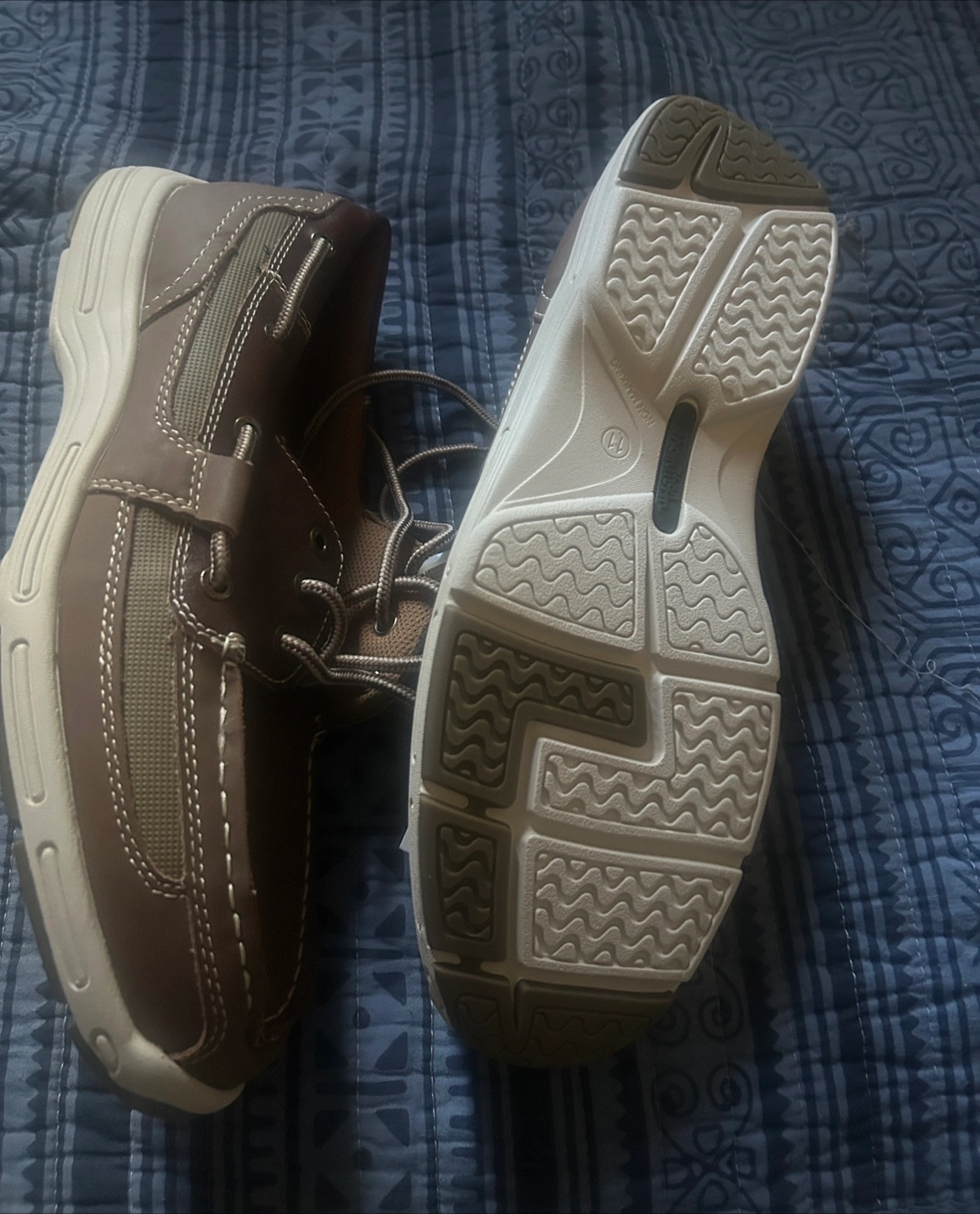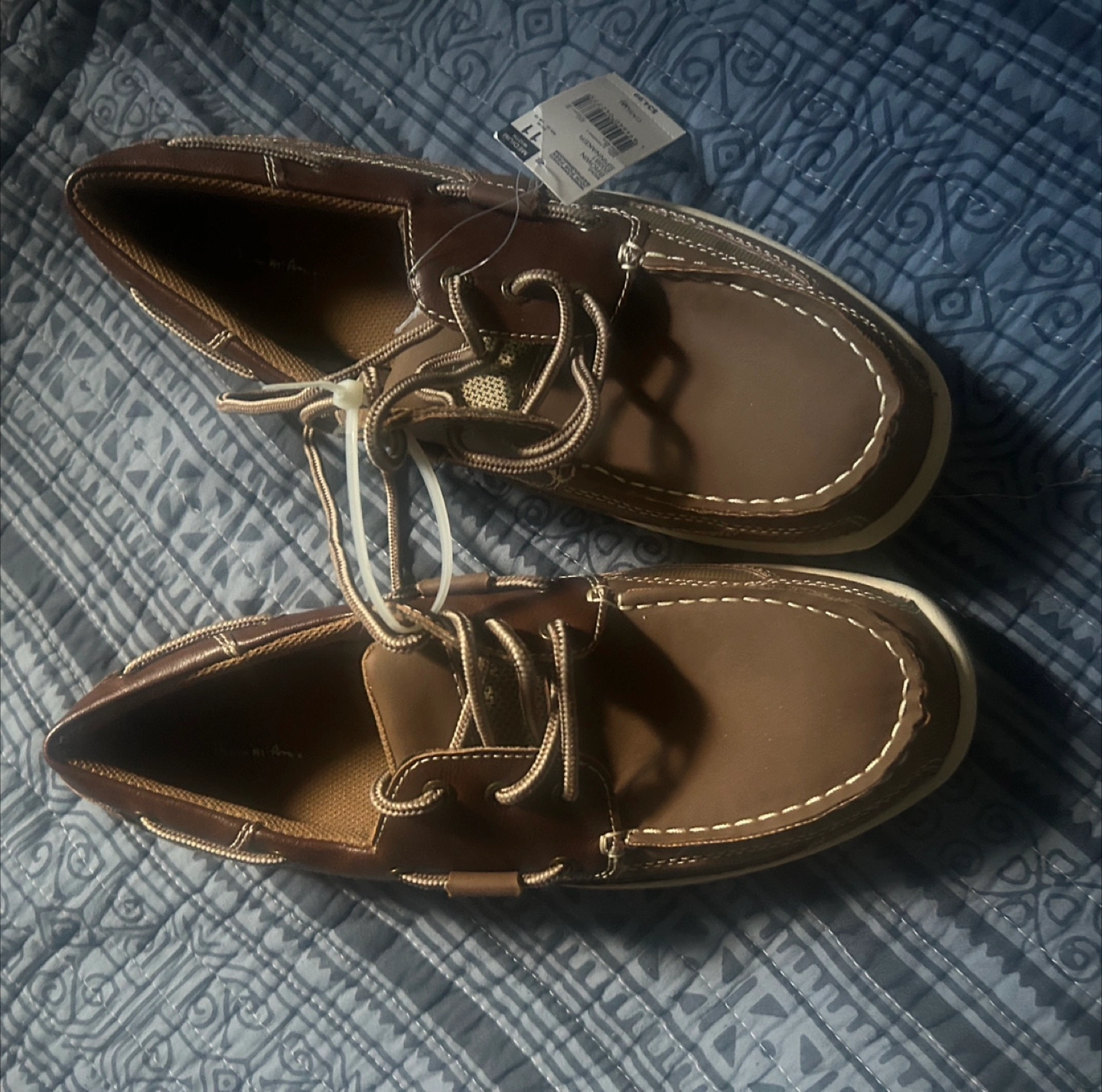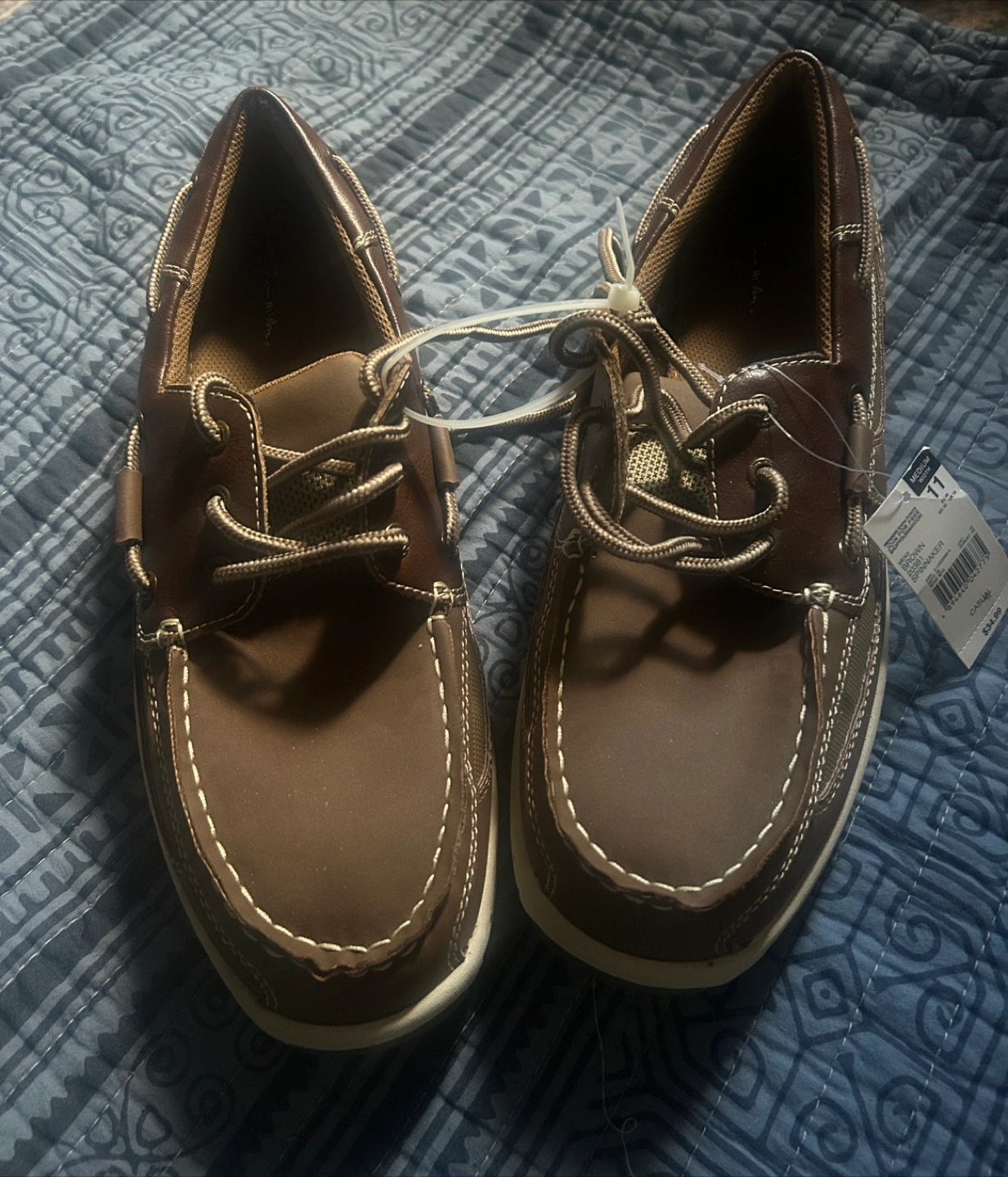 10Selling a pair of brand new Spinnaker boat shoes in size 11. They're a nice brown color and have a medium width. The original price tag is still on them for $34.99!