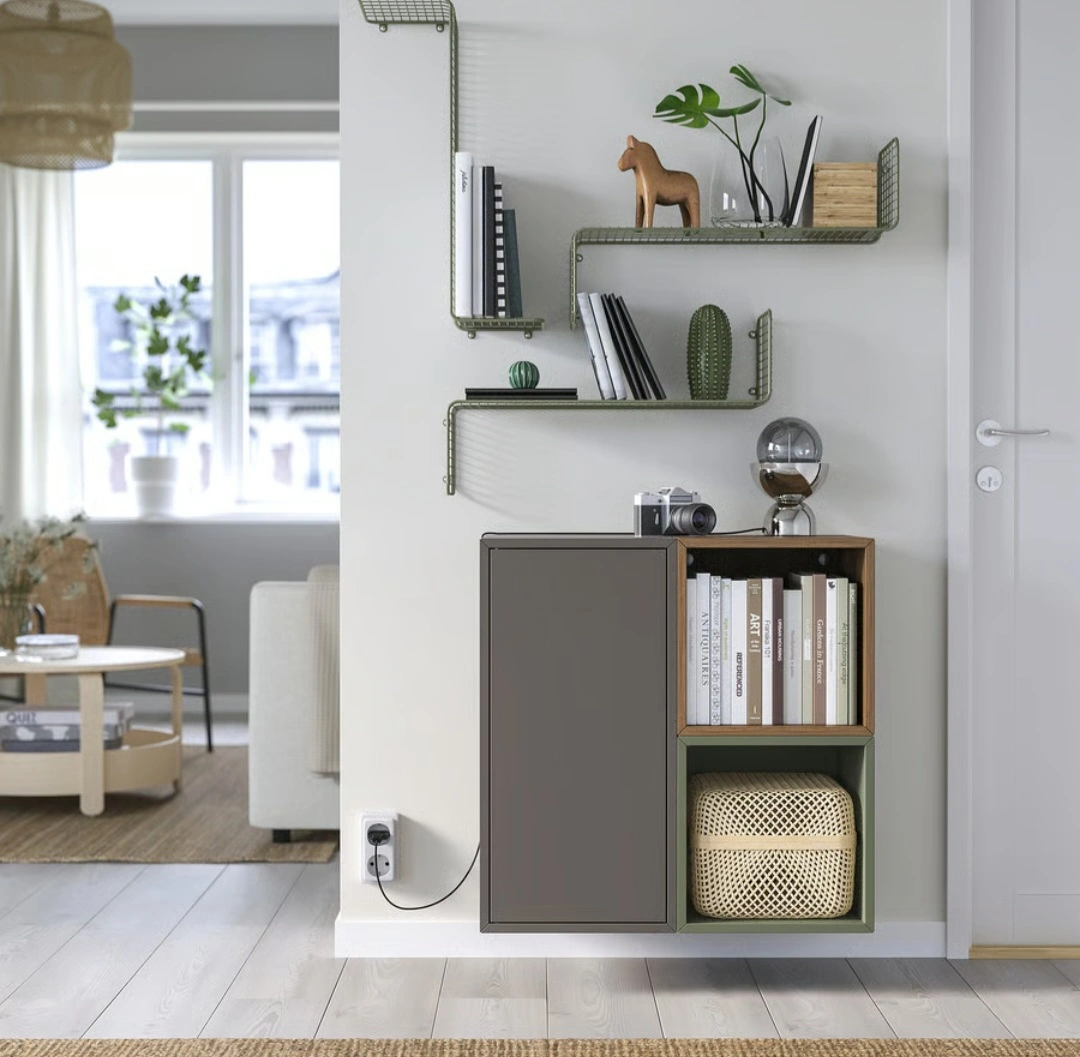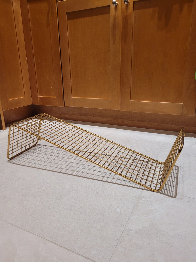 Ikea wall shelf unit in a gold steel colour.