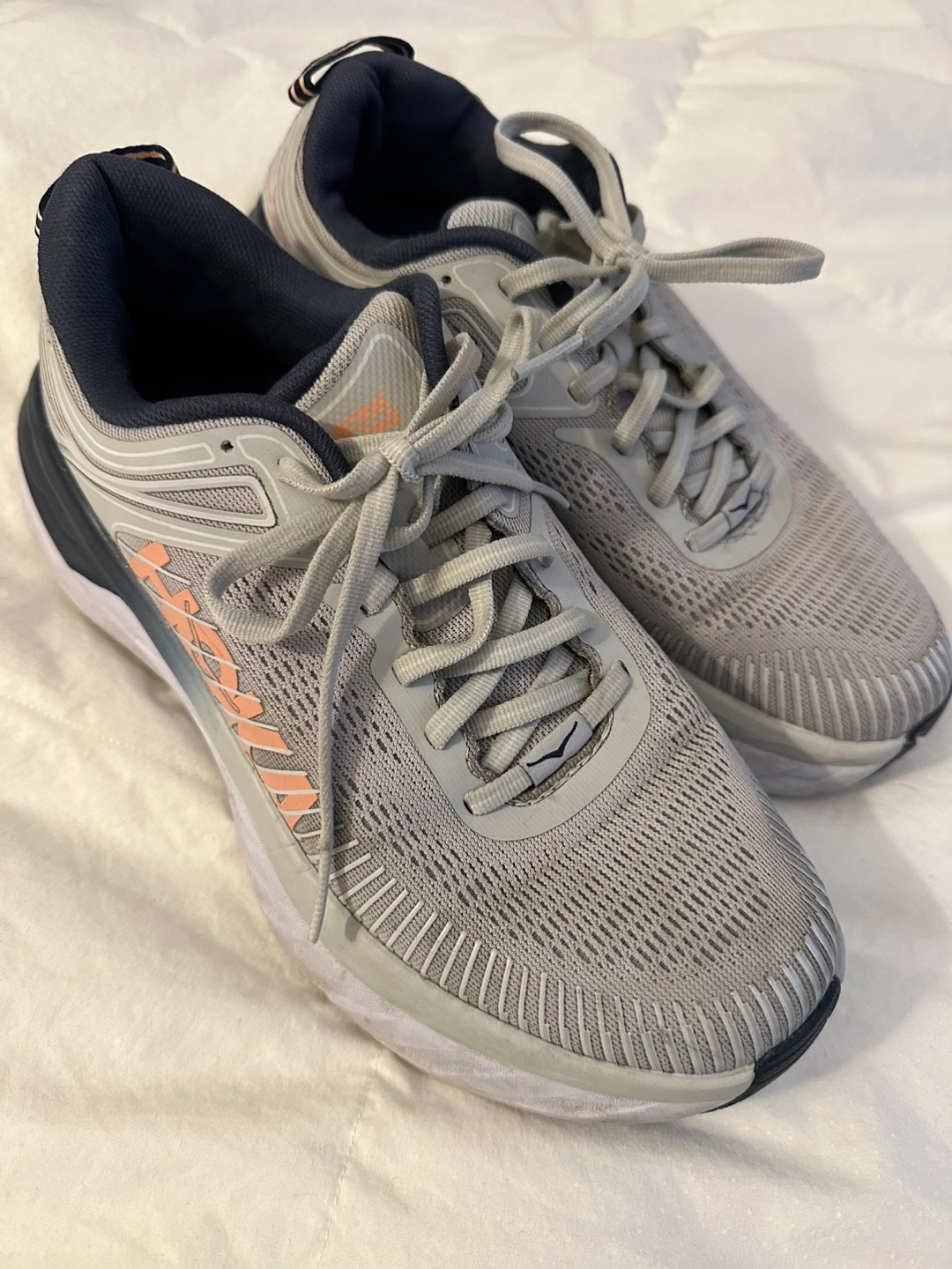 704Selling a pair of Hoka One One Bondi 7 women's running shoes in size 8. They are in good condition and ready for a new home! These shoes offer maximum cushioning and support for a comfortable run or walk!