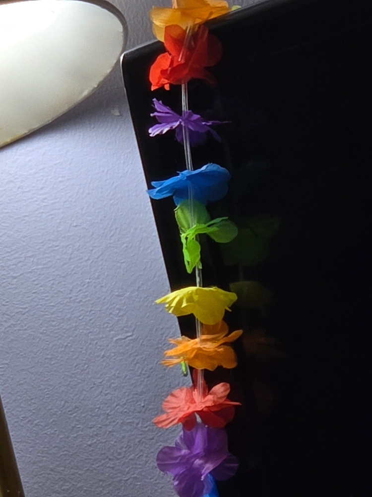 74Add a touch of color to your next party with this fun rainbow flower lei! It's perfect for adding a festive touch to any occasion