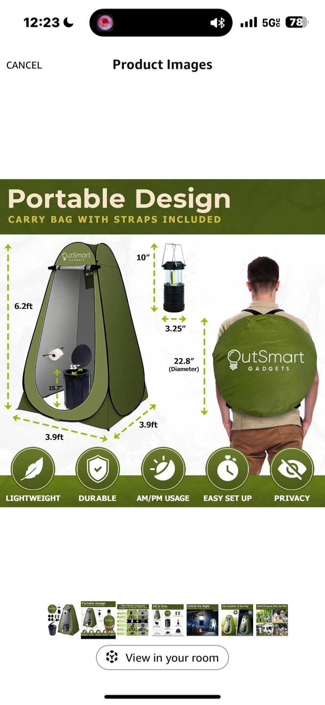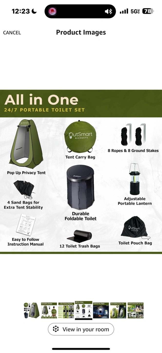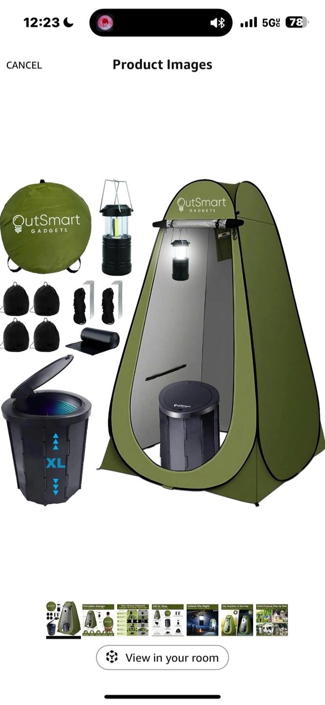 109Get ready for any outdoor adventure with this all-in-one portable toilet set from OutSmart Gadgets! It includes: - Pop-up privacy tent (6.2ft tall) - Tent carry bag - Durable foldable toilet - Adjustable portable lantern - 4 sand bags for extra tent stability - 8 ropes & 8 ground stakes - 12 toilet trash bags - Toilet pouch bag - Easy-to-follow instruction manual It's lightweight, durable, easy to set up, and provides privacy wherever you go