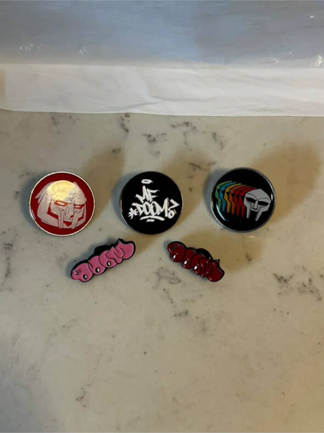 Selling a set of MF DOOM enamel pins! They feature various designs related to the iconic rapper. Great for adding some flair to your backpack, jacket, or pin collection
