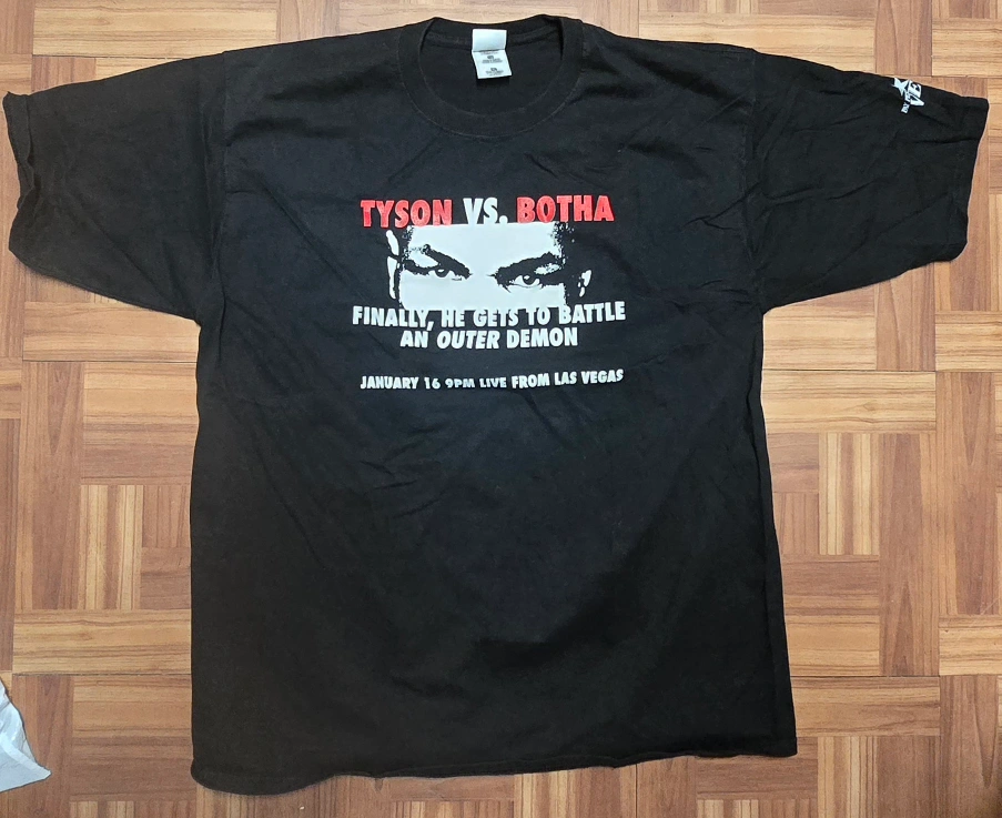 10Rare Unworn new Vintage Mike Tyson VS Francois Botha 90's Boxing The Wiz/Cablevision Promo T Shirt XL black Fruit of the Loom The shirt is made of 100% cotton.