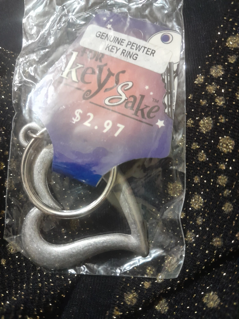 I'm selling a brand new, genuine pewter key ring from Keys Sake! It's in the shape of a heart and still sealed in its original packaging. The original price tag shows $2.97.