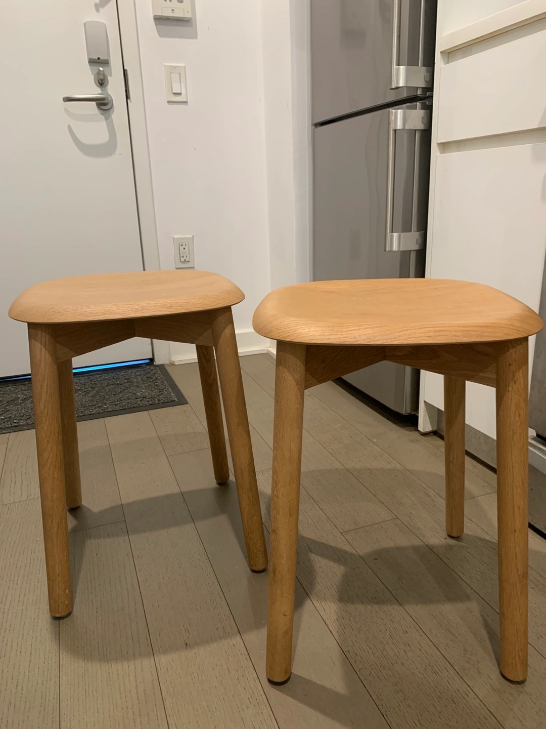 315Handsome: Soft Edge 72 stool from Hay The Soft Edge 72 stool by design duo Iskos-Berlin combines minimalist design with exceptional comfort and functional lightness. The ergonomically shaped seat made of moulded veneer wood offers optimum seating comfort thanks to its soft edges. The slim powder-coated steel frame provides stability while remaining light and airy. Thanks to its stackability and compact design, the stool is ideal for flexible, space-saving solutions in living or working areas. Hay - contemporary furniture from Denmark Founded in 2002, the Danish manufacturer Hay aims to create furniture that meets the needs of modern life and is accessible to the widest possible audience. Inspired by the stable structures of architecture and the dynamic twists and turns of fashion, Hay combines the values of both industries to create durable and appealing quality products. Material and format The Soft Edge 72 stool is made of solid oak. It has a diameter of 36 cm and is 47.5 cm high. Retails for $245
