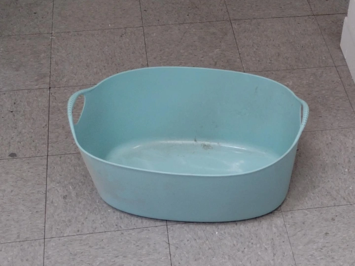 Selling a light blue plastic storage tub. It's in great condition and ready for a new home! Perfect for organizing toys, laundry, or anything else you need to store. It's a versatile and practical item.
