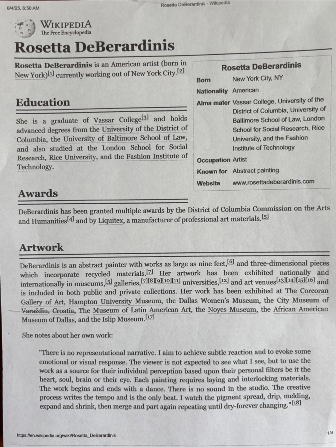 Selling a unique abstract painting by artist Rosetta DeBerardinis. Her work is known for incorporating recycled materials and has been exhibited in galleries and museums internationally. This original piece is a vibrant addition to any art collection. (See Wikipedia above) Photographed under plastic. Ready to hang! Please send date and time for purchase before 8pm on East 34th Street and 1st Ave across from NYU Hospital. Cash or money order. No Zelle. Thanks