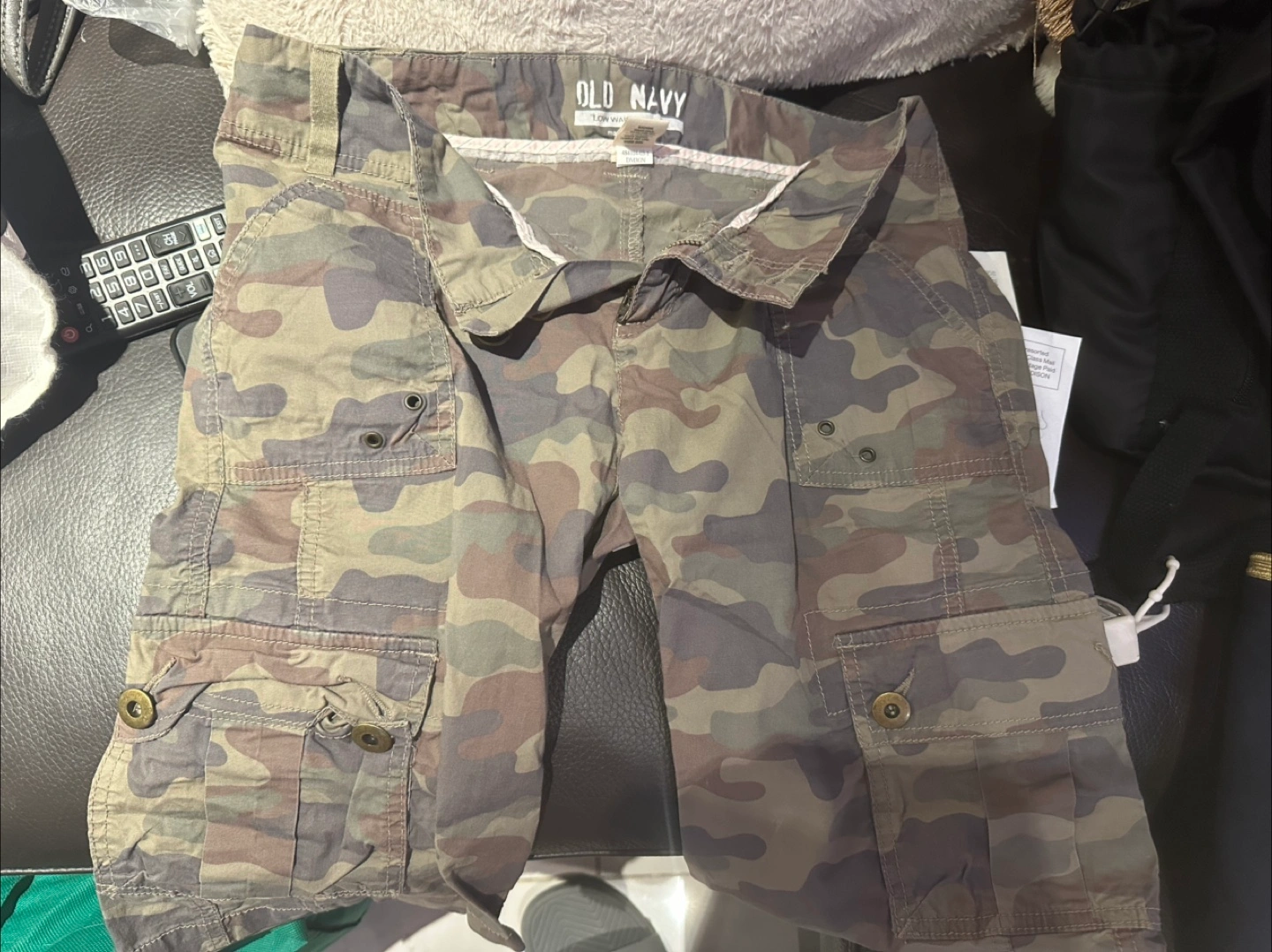 Camo cargo shorts from Old Navy! These are great for a casual look or outdoor adventures. They have a comfortable fit and plenty of pockets for storage. Clean up my closet.