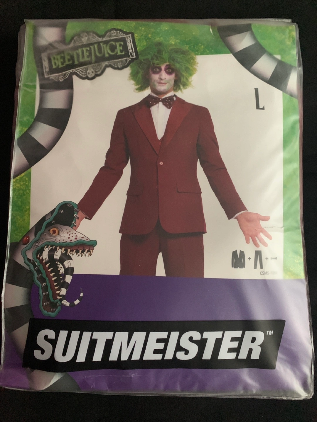 Get ready to turn heads with this Suitmeister Beetlejuice costume in size large! This costume is perfect for Halloween or any costume party. Originally bought for $60.00, this costume is in great condition and ready for a new home