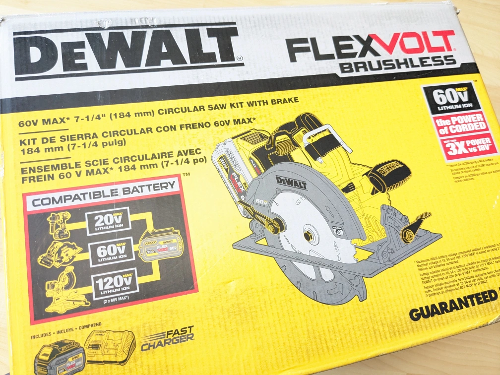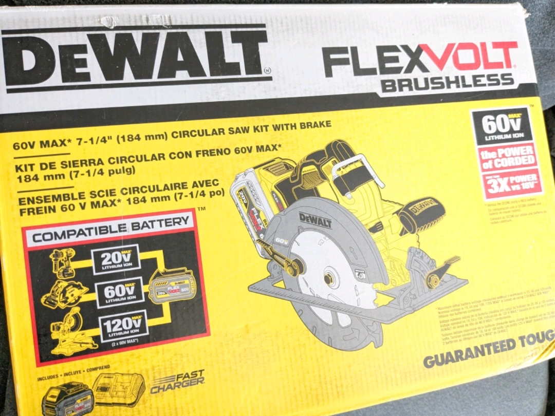 Brand New - 60V Max DeWalt Flexvolt HEAVY -DUTY Circular Saw with Framing Blade - 6AH FLEXVOLT Lithium Power Battery Pack - Fan Cooled FAST CHARGER and Contractor Bag ... INCLUDED