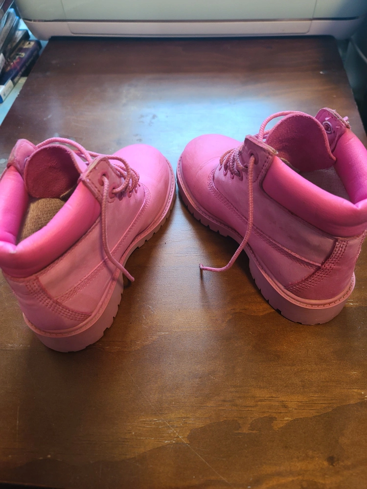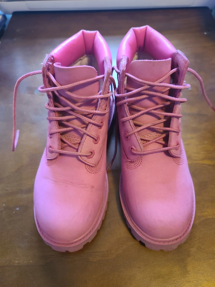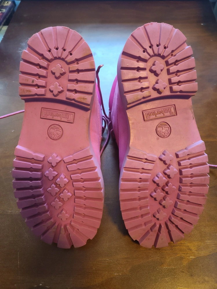 Selling a pair of Timberland boots in pink (Toddler Size13). They are in overall Good Condition and ready for a new home. Note: Sold as is (see photos). Feel free to ask questions before purchase.