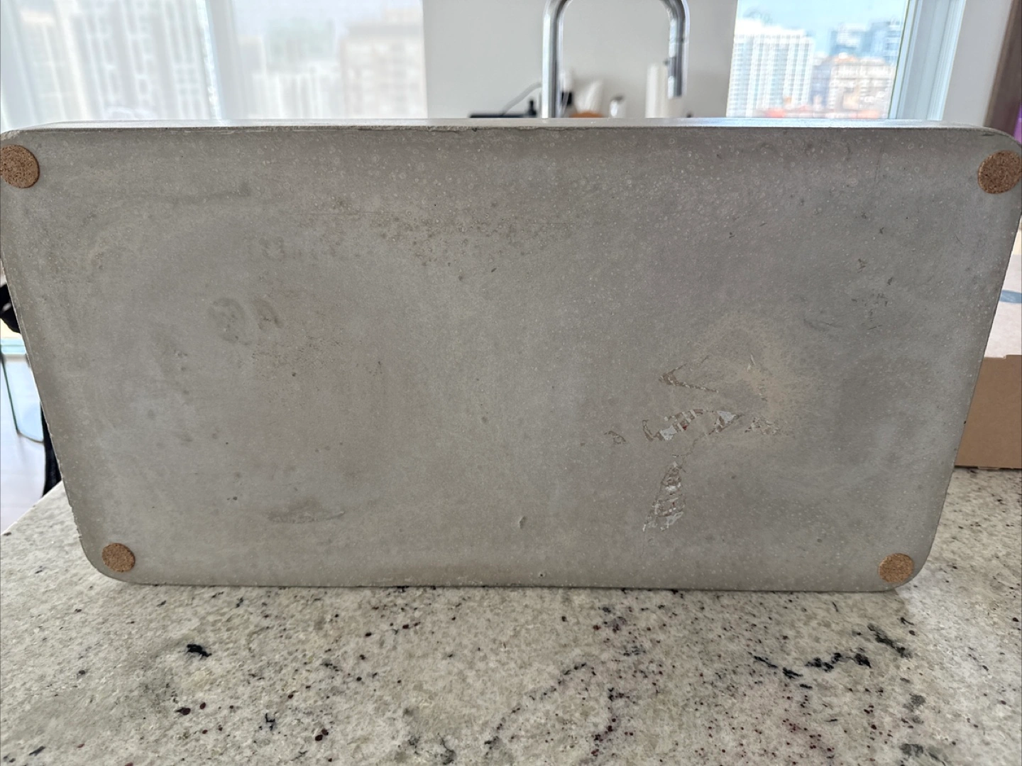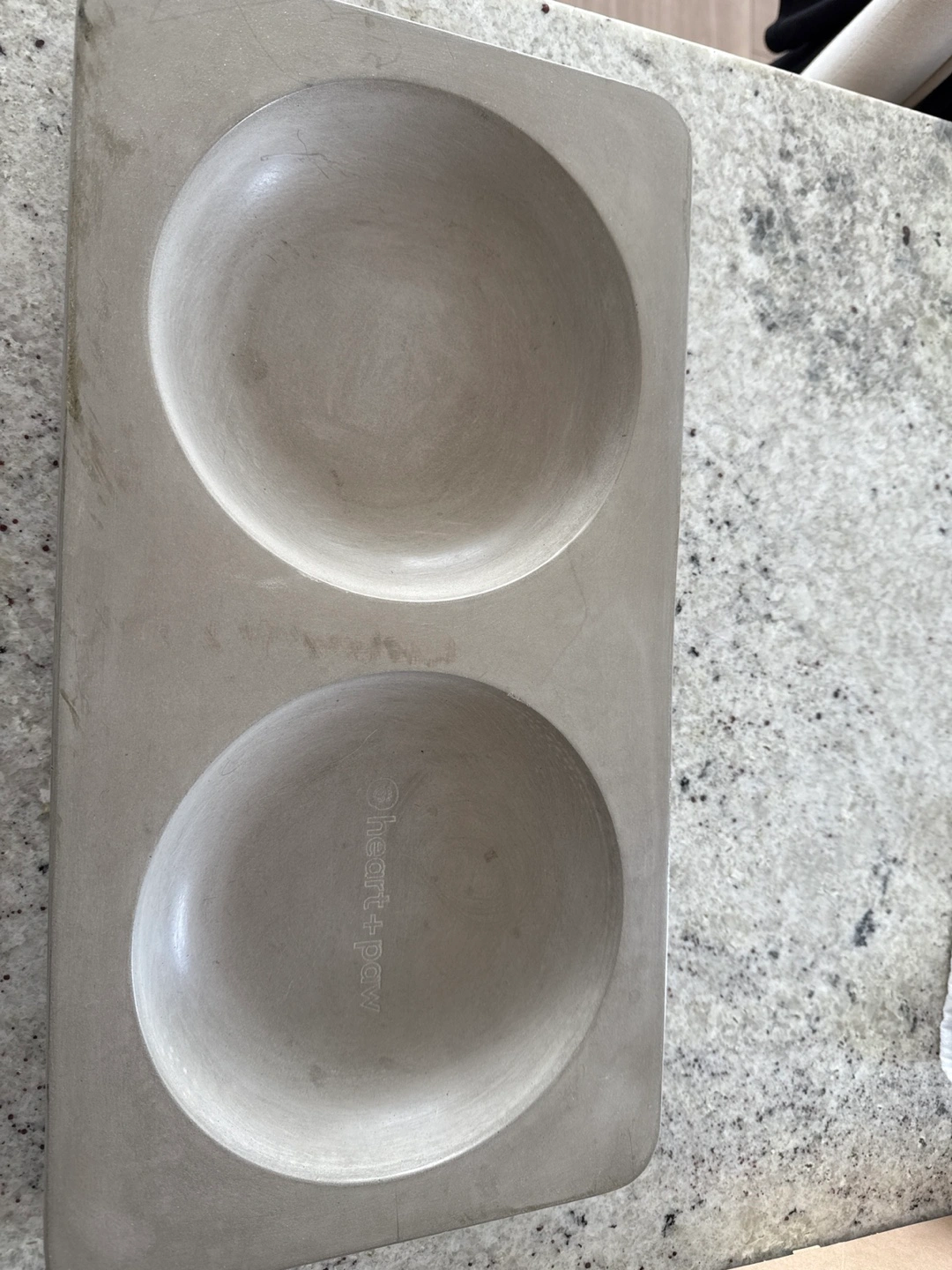 Selling a Heart+Paw Double Diner. It's a stylish and functional feeding solution for your furry friends! The concrete material adds a modern touch to any home decor. It shows some signs of use on the bottom, but is otherwise in good condition.