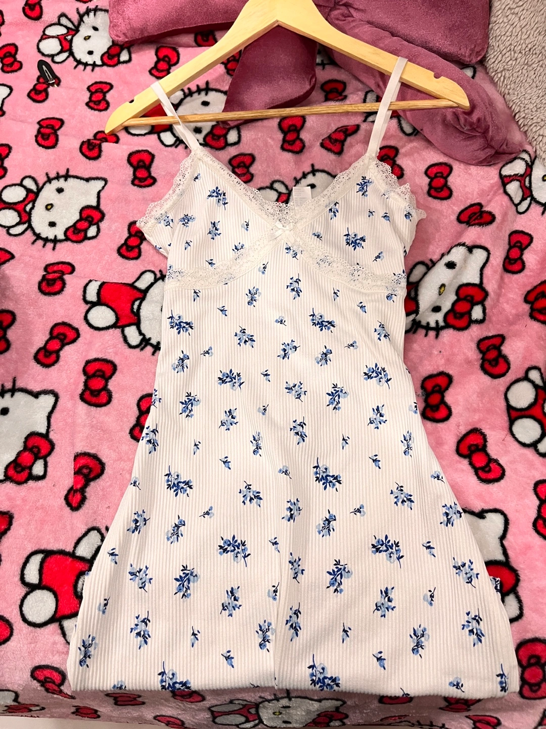 45This is a cute cami dress with a floral pattern and lace trim. It's perfect for a casual day out or a night on the town! The dress is in good condition and ready for a new home