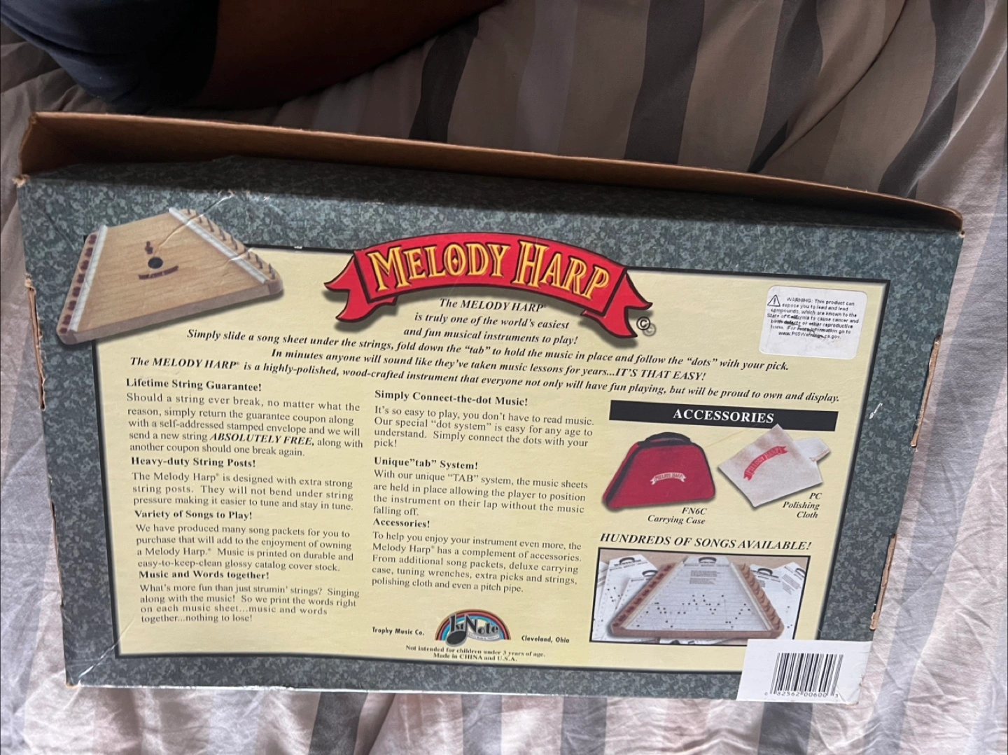 Selling a Melody Harp in its original box! This instrument is known for being one of the world's easiest instruments to play. It's crafted from durable and wood-edged instrument that everyone will have fun playing with.