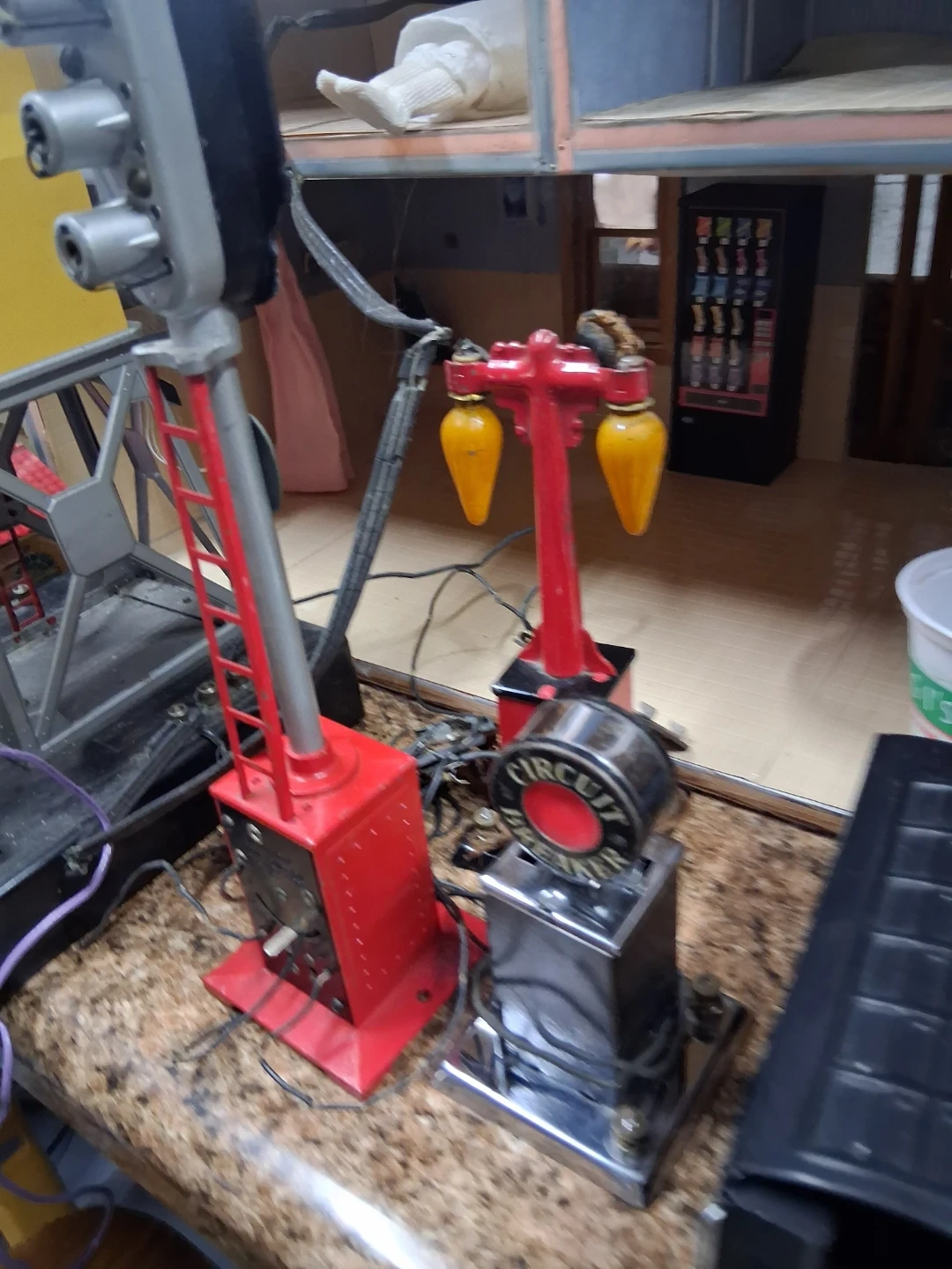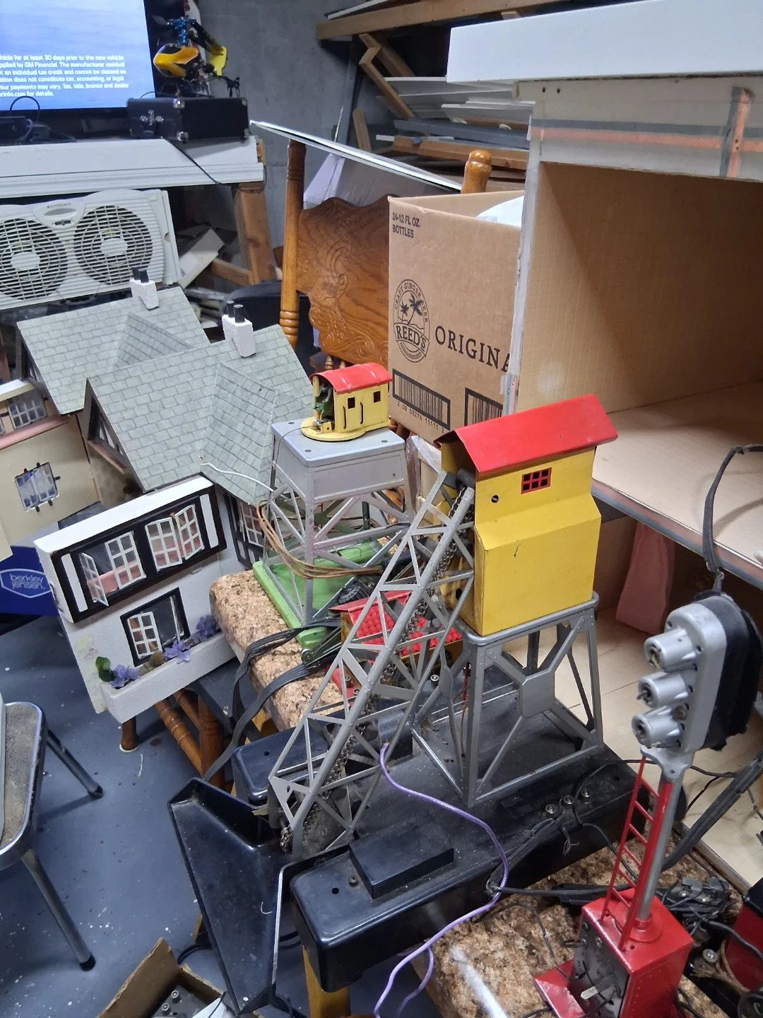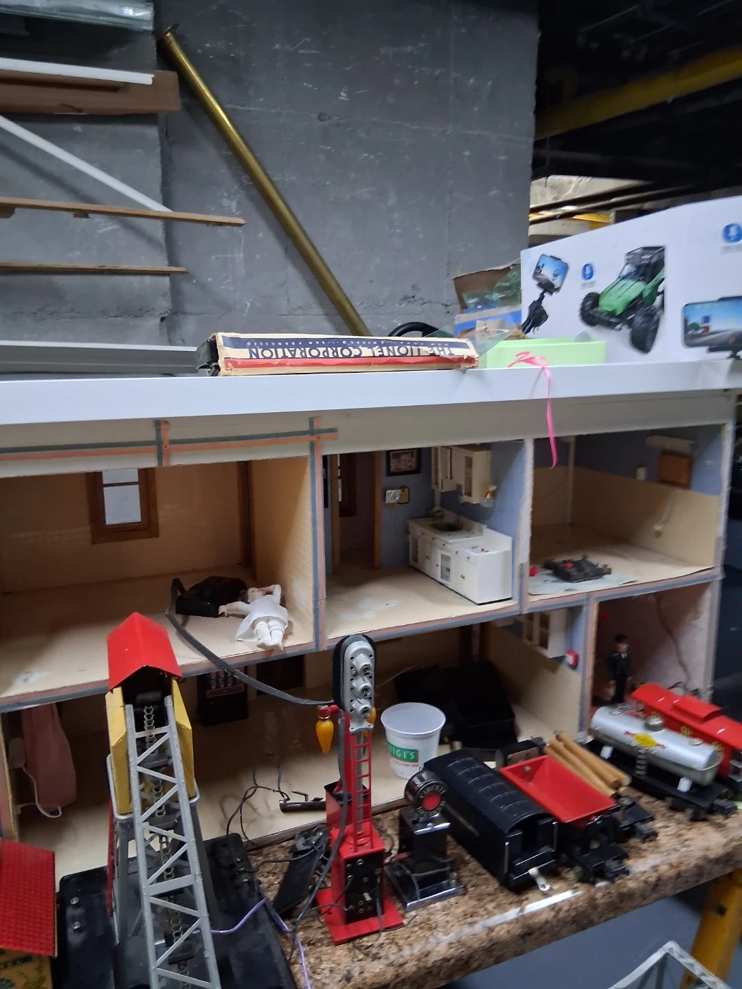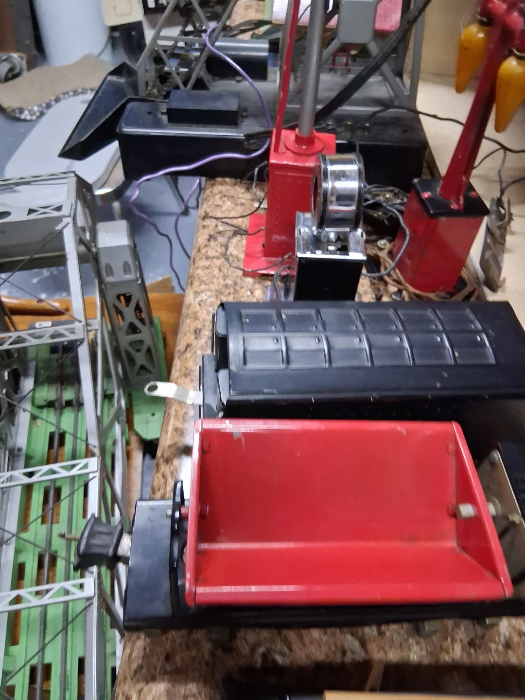 Lot of vintage Lionel O gauge model train accessories including buildings, track bridge, and signal lights. Also includes a whistle house Crane to lift and figures. Great for starting or expanding a model train layout!I Have a prewar 1939 collection of Lionel trains in great condition must see pics