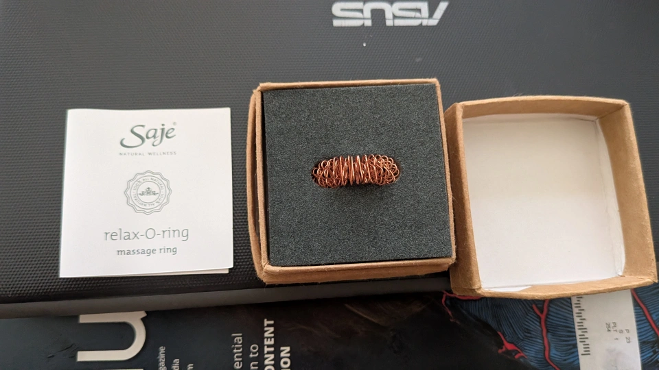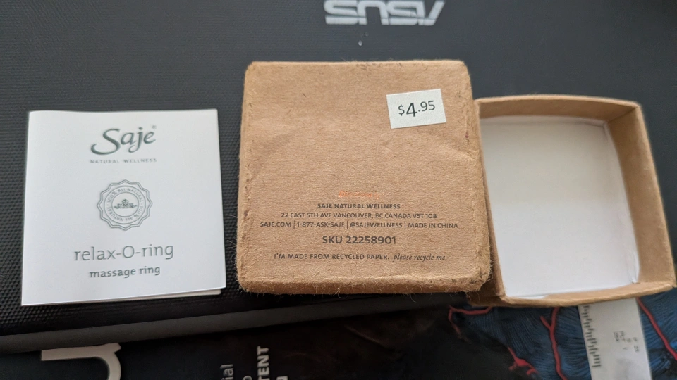 Selling a Saje Relax-O-Ring massage ring. It comes with its original box. Originally bought for $4.95. It's made from recycled paper, so you can feel good about your purchase. Never used!