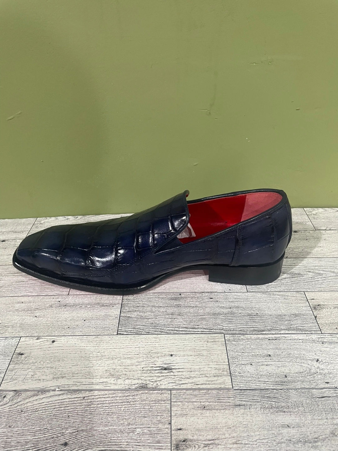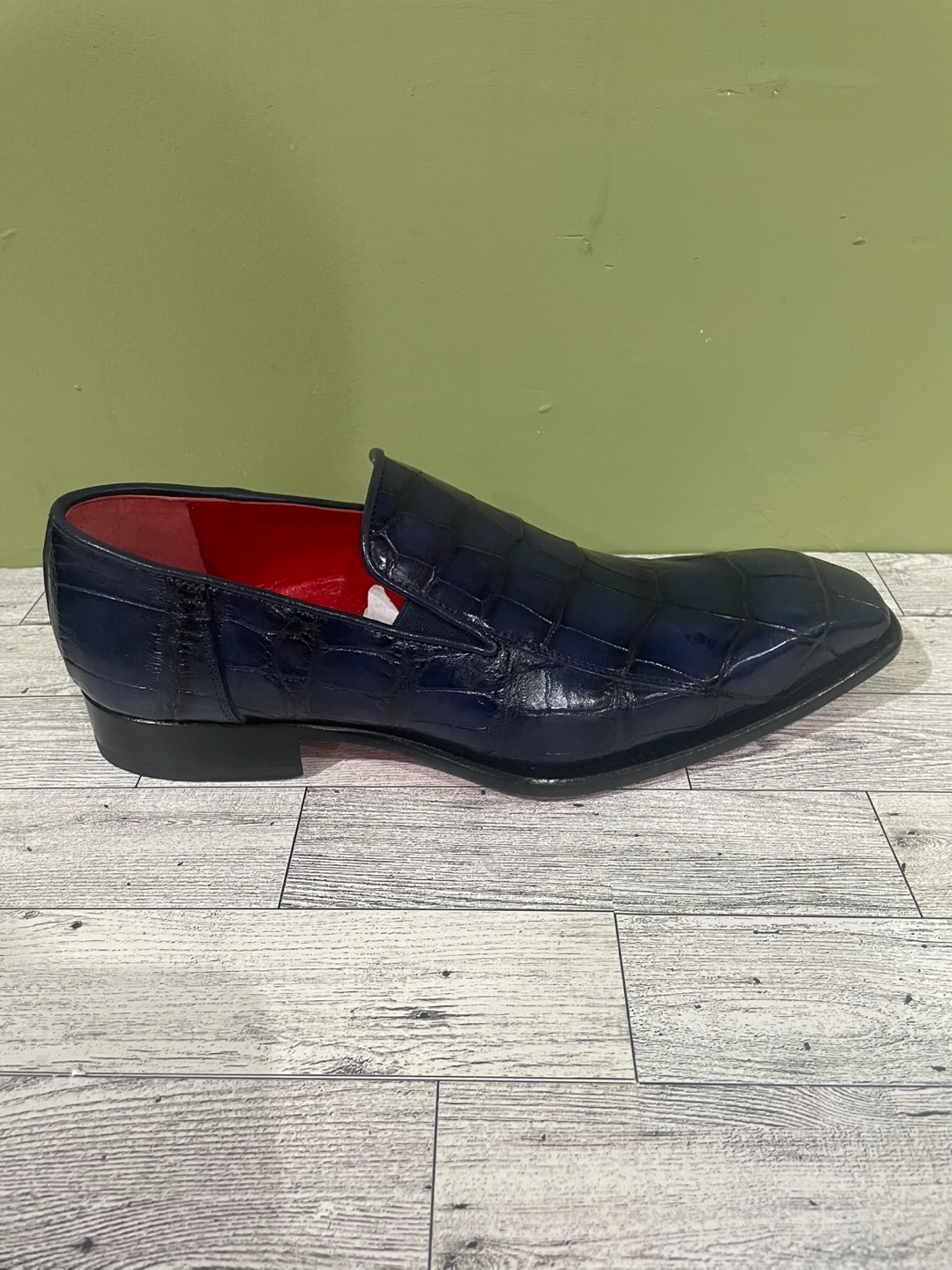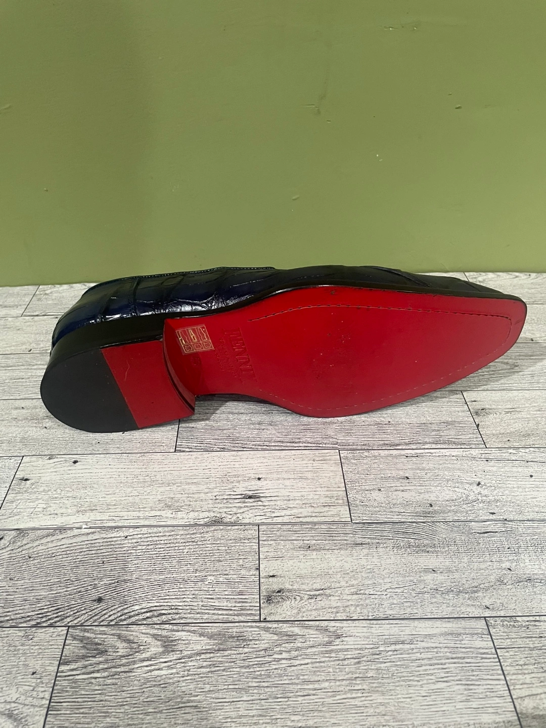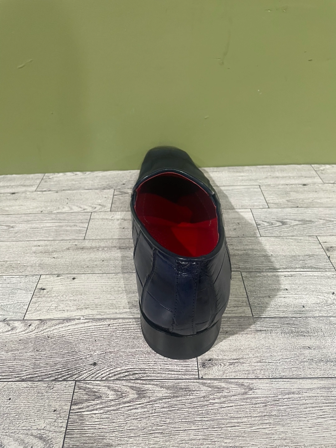 Here are some stylish men's loafers from FENNYX ITALY. They feature a unique blue alligator with an and a striking red interior. These shoes are sure to make a statement!