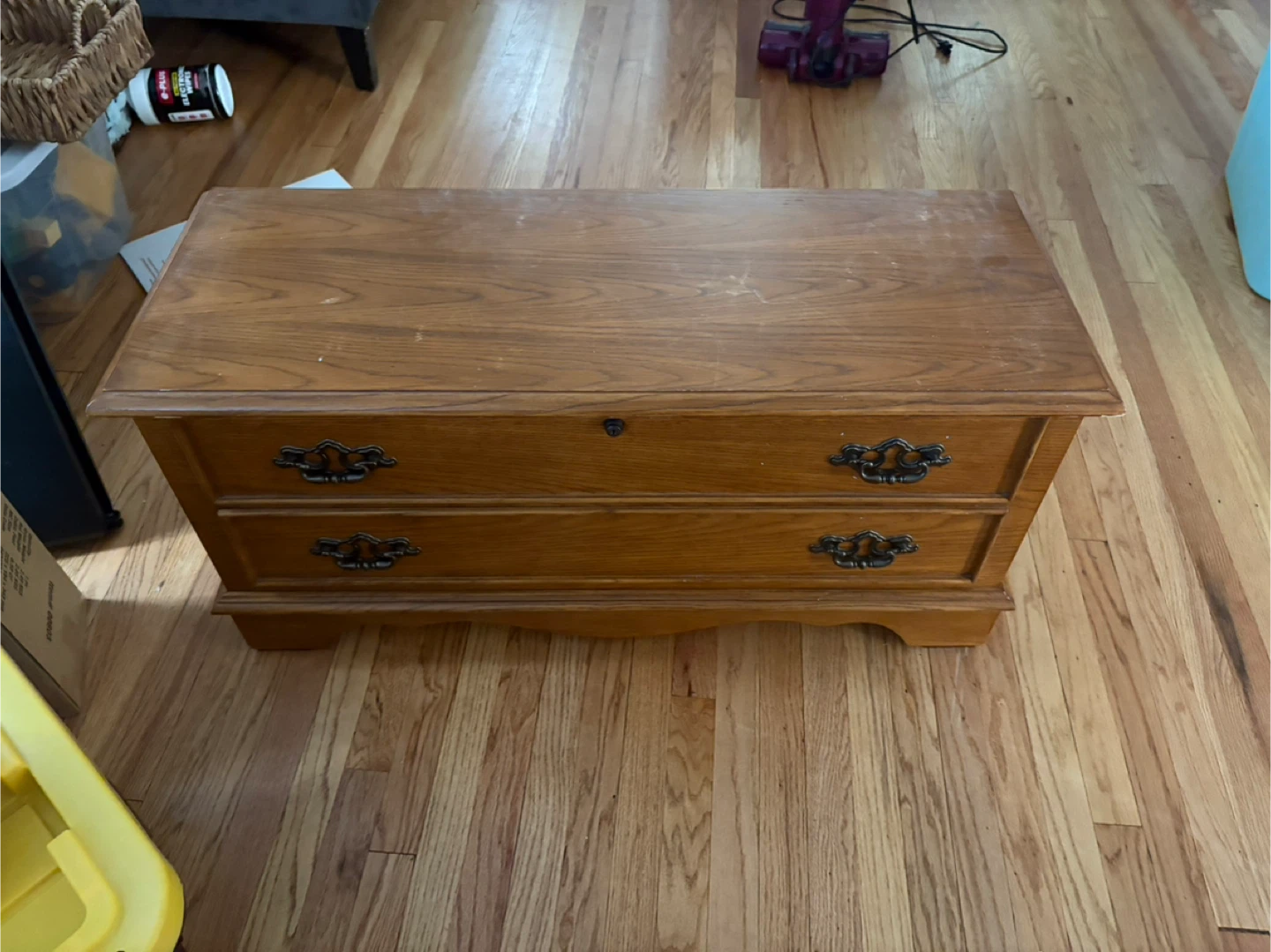 Selling a Lane cedar chest. It's in good condition and has a classic design! It's perfect for storing blankets, clothes, or other items. The chest is made of cedar, which helps to protect your belongings from moths and other pests