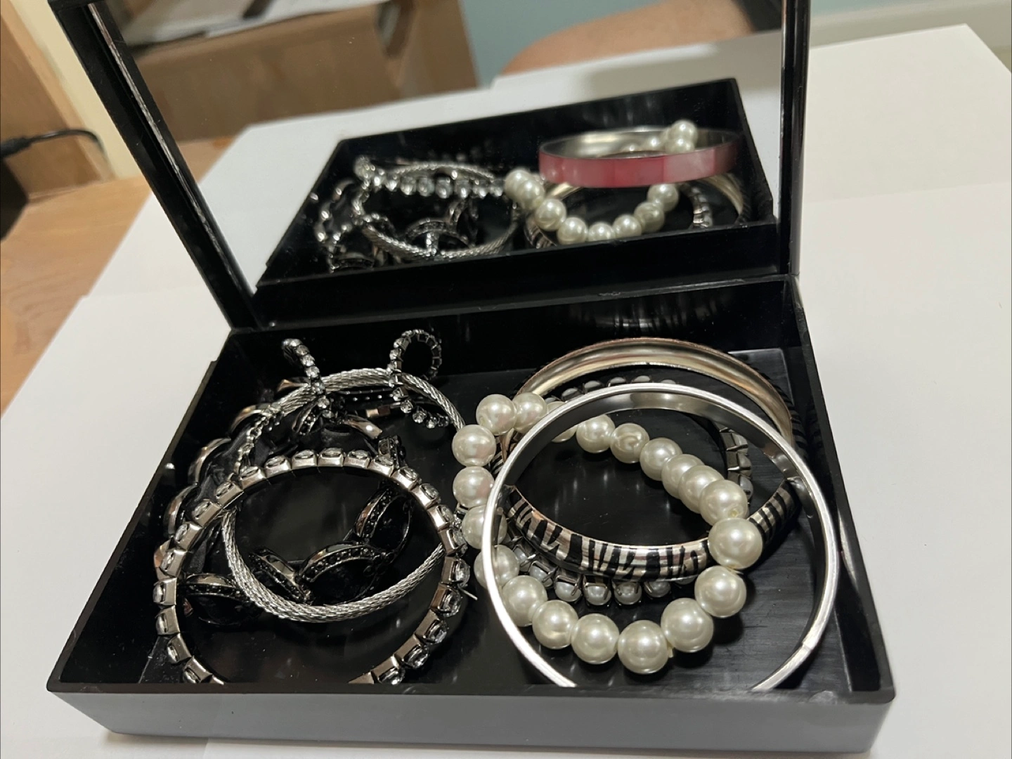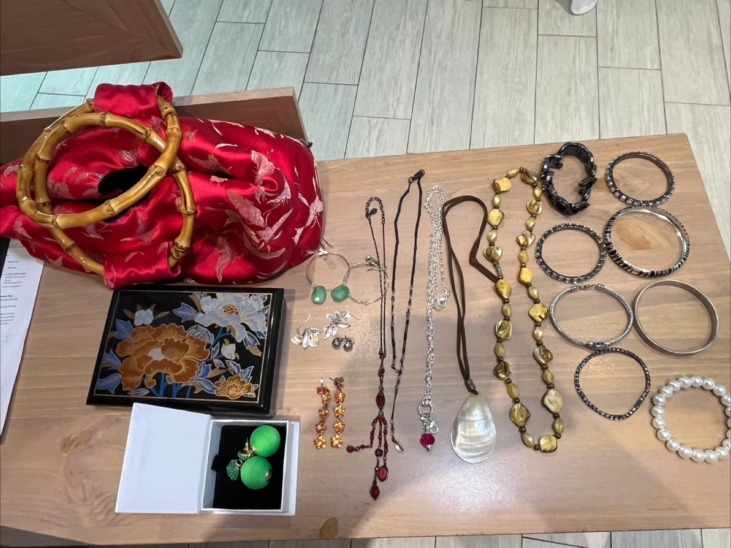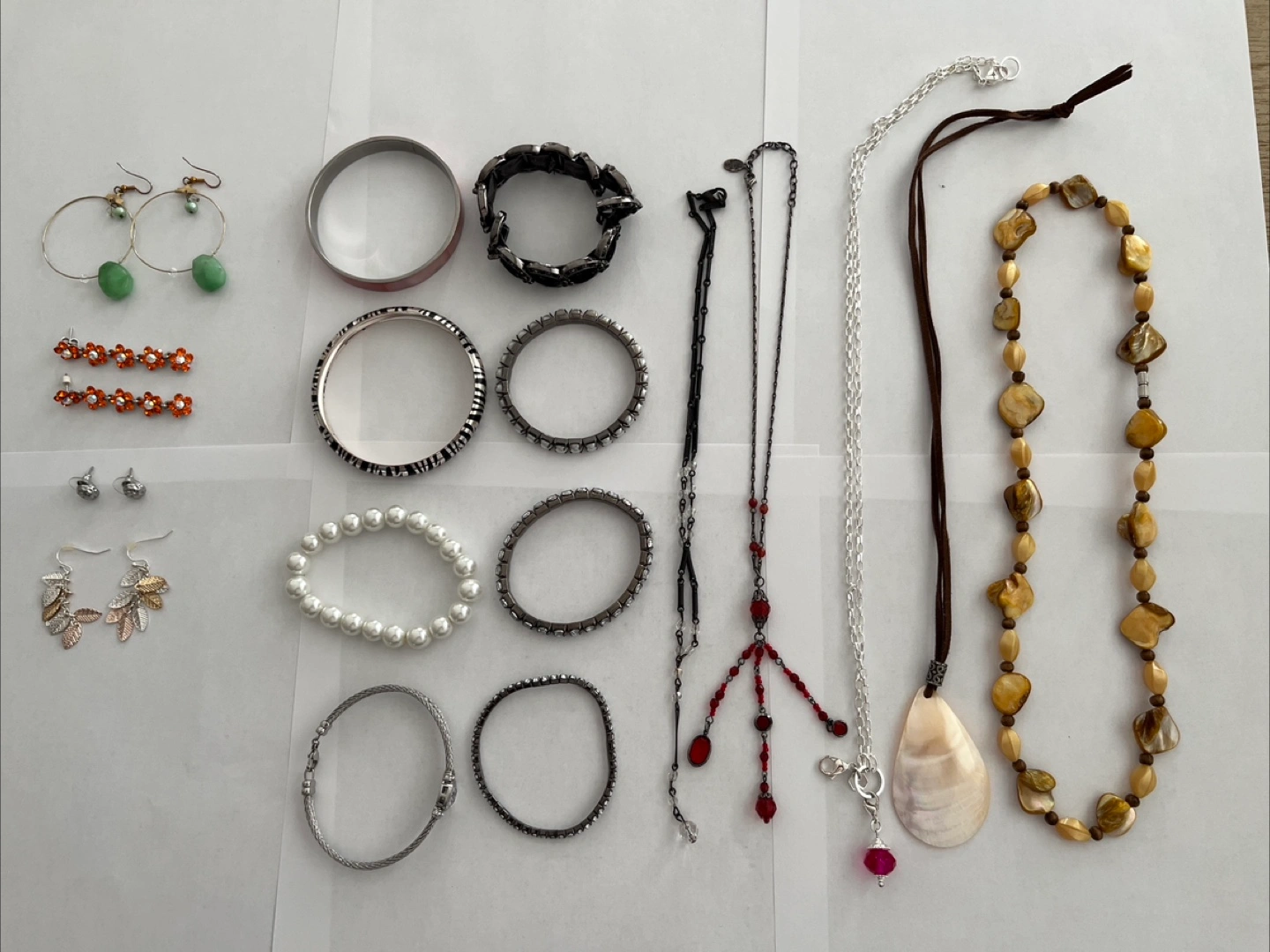 98Selling a collection of assorted jewelry, including necklaces, earrings, and bracelets. There are various styles and colors, perfect for adding to your collection or gifting to someone special! All items are in good condition. - 8 Bracelets - 5 Necklaces - 5 Sets of Earrings - 4 Carry Cases - 1 Large Red Carry Bag Ave U and East 66th Street, Brooklyn Local Pickup Only.
