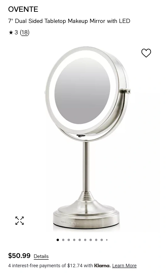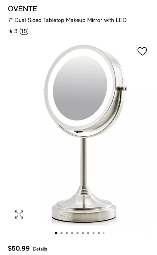 Selling an Ovente 7" dual sided tabletop makeup mirror with LED lighting It features: - Dual sided mirror: 1x for regular viewing and 7x for precision - 360° swivel design that adjusts to virtually any angle - Originally bought for $50.99
