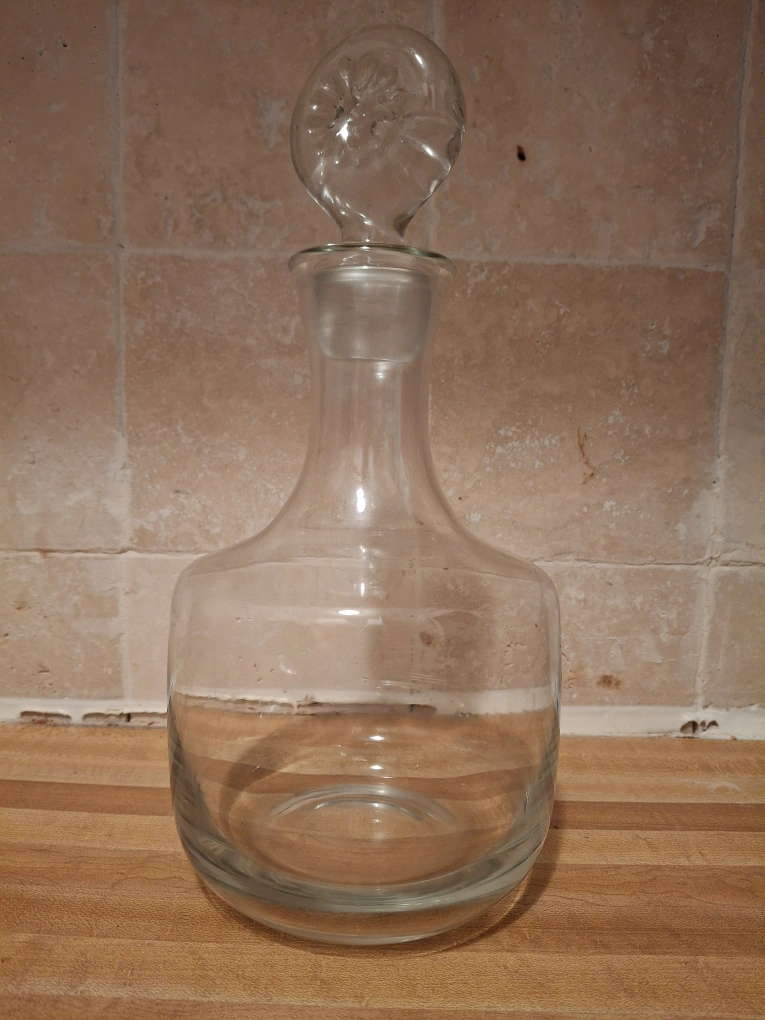 Selling a beautiful glass decanter, perfect for wine or spirits! It comes with a matching glass stopper.