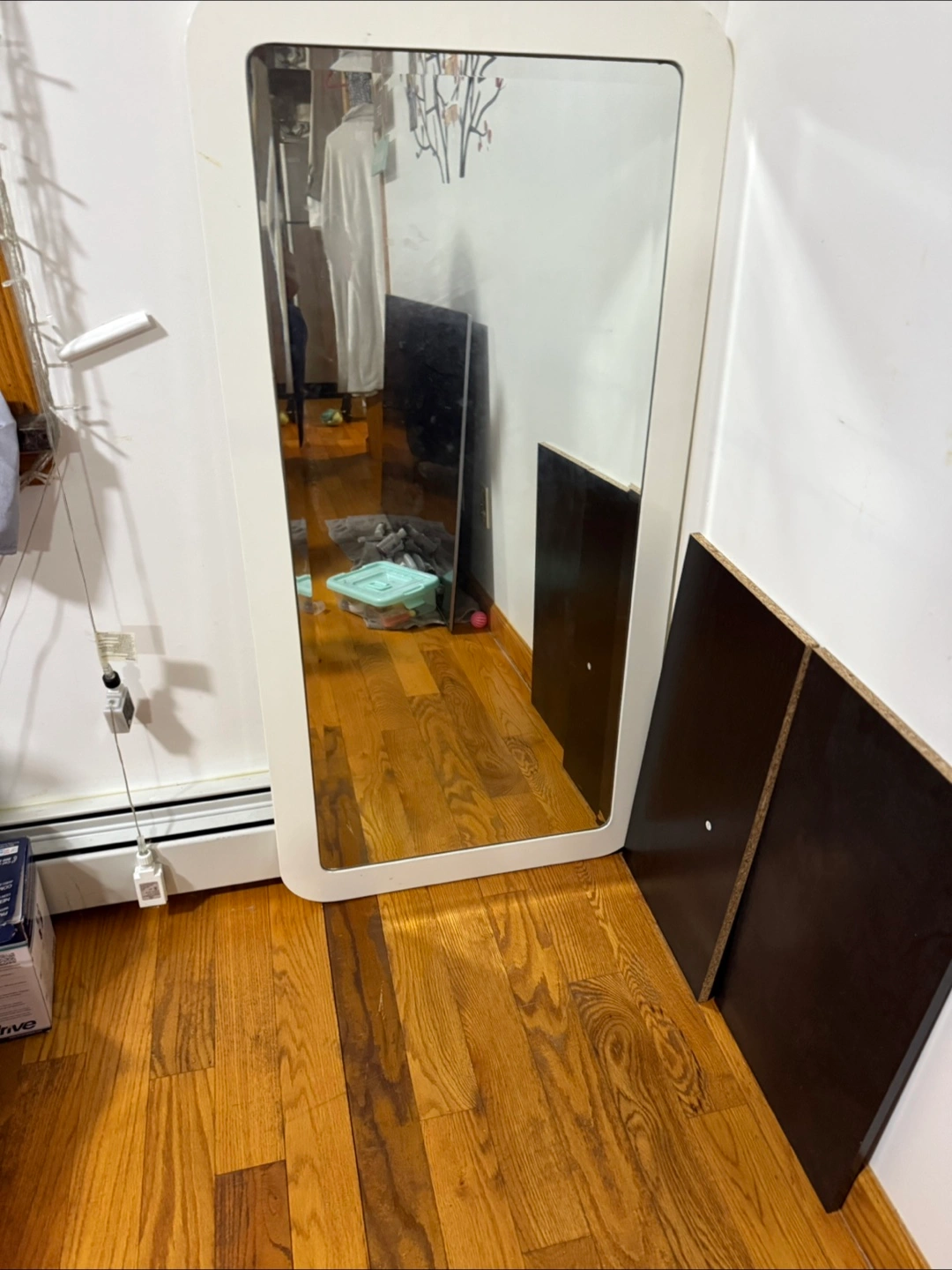 Selling a stylish white-framed mirror! It's in great condition and ready to brighten up your space. The clean white frame adds a touch of modern elegance to any room. Perfect for a bedroom, bathroom, or entryway!