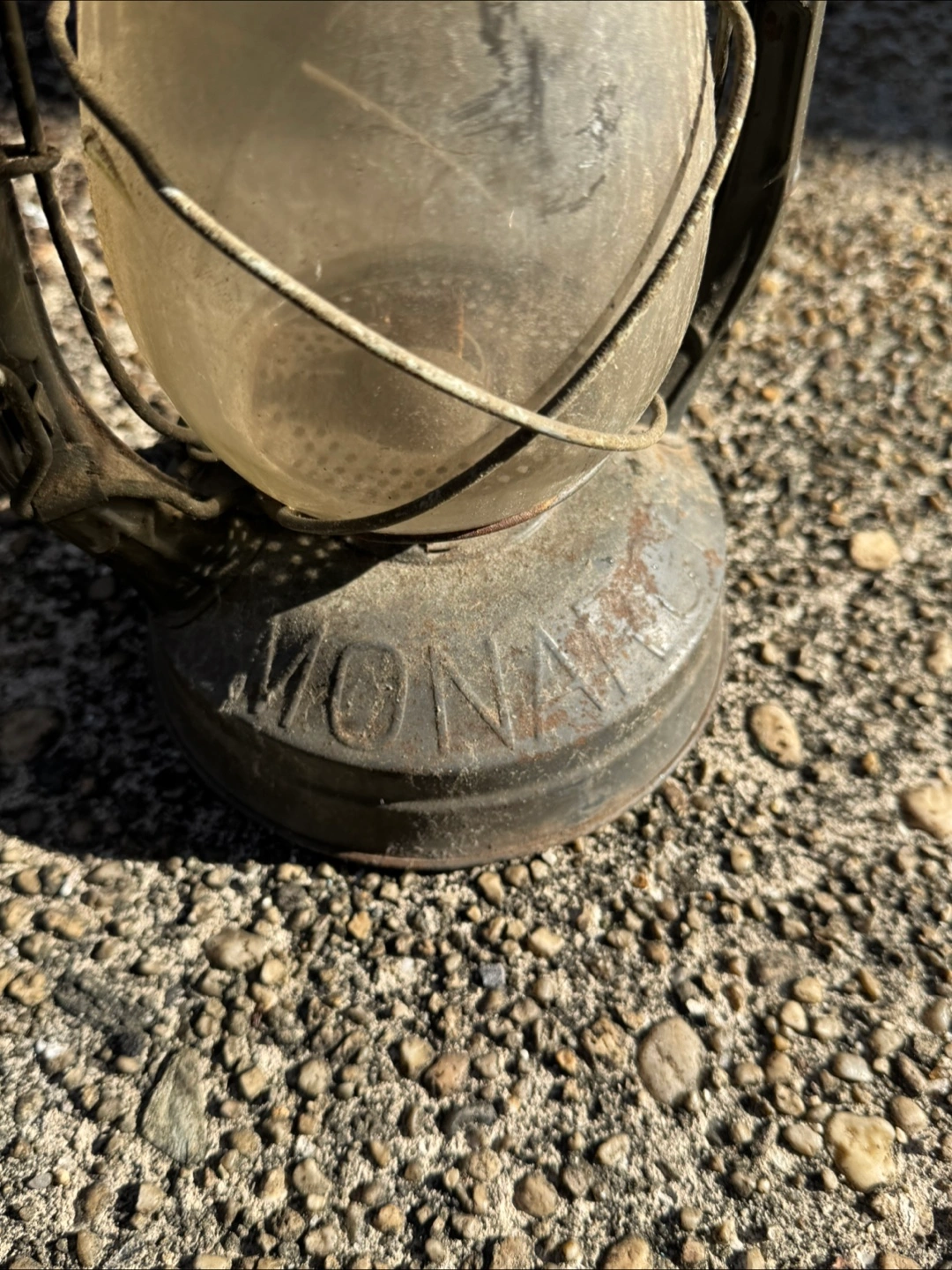 89Selling a vintage Dietz Monarch kerosene lantern 14” tall with the handle down 17.5” tall with the handle up Approx 7” wide