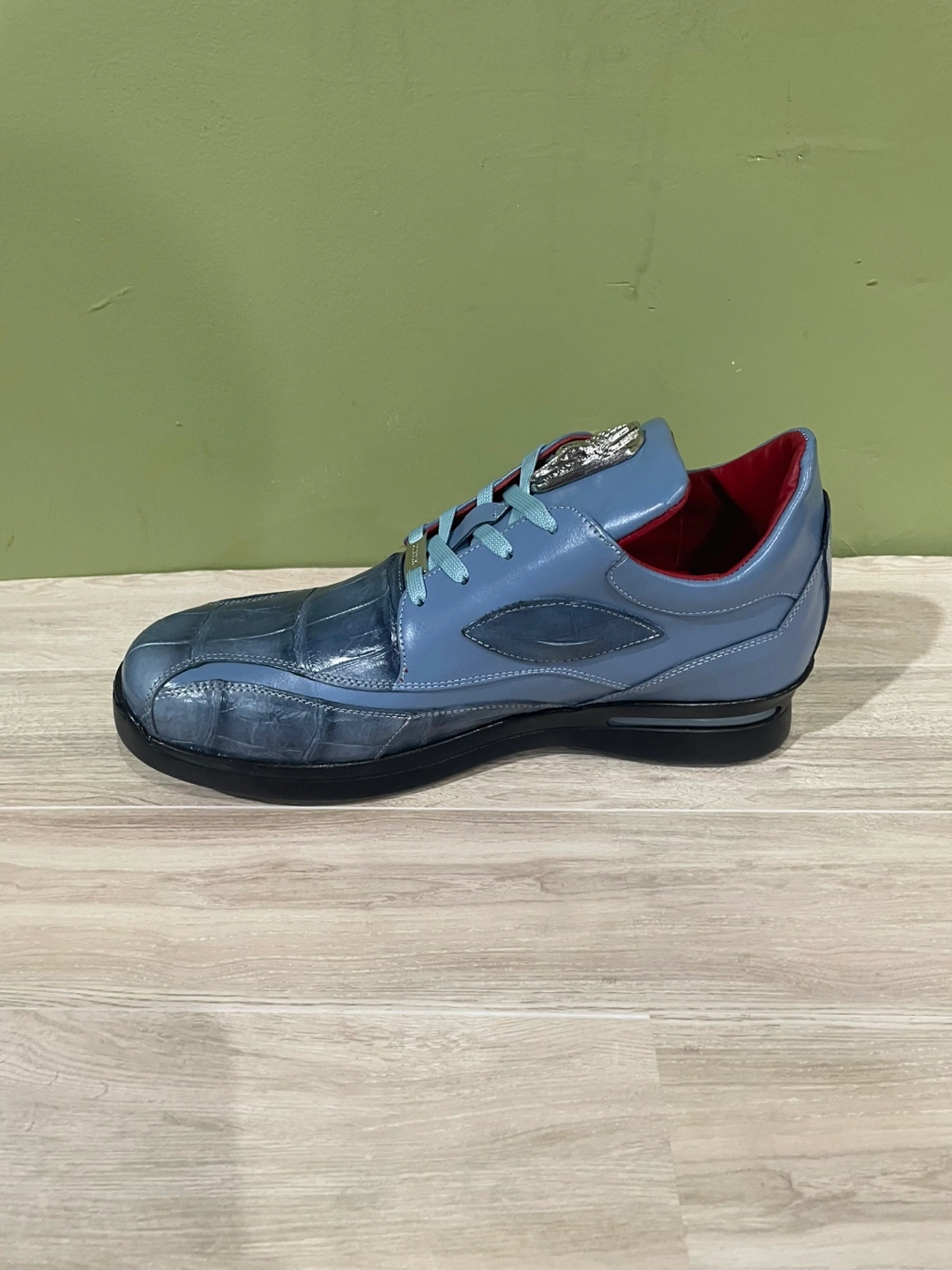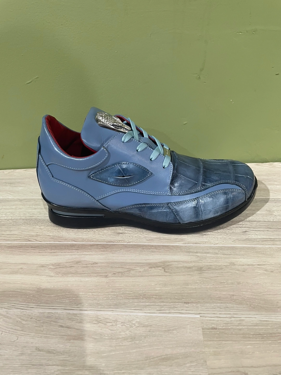 Selling a pair of FENNIX Italy dress shoes in a stylish blue alligator/leather. These shoes feature a unique design and are in great condition. Perfect for adding a touch of sophistication to your wardrobe! Side eye balls made in Italy