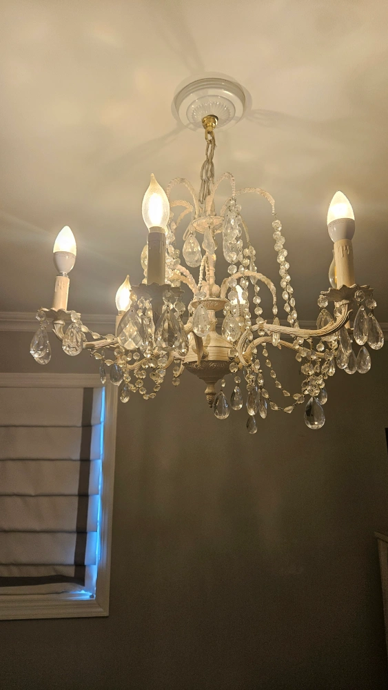 Selling a beautiful crystal chandelier! It adds a touch of elegance to any room with its sparkling crystals and classic design. Perfect for dining rooms, living rooms, or bedrooms, this chandelier is sure to impress.