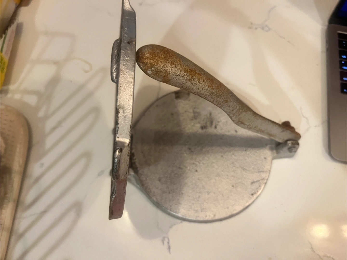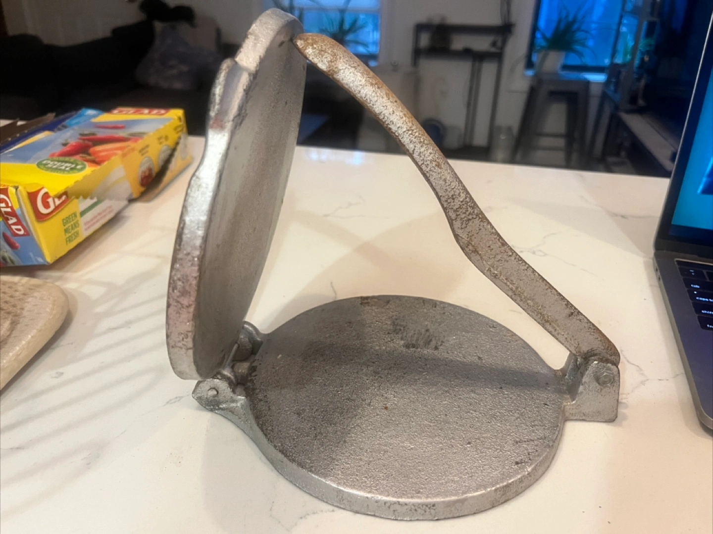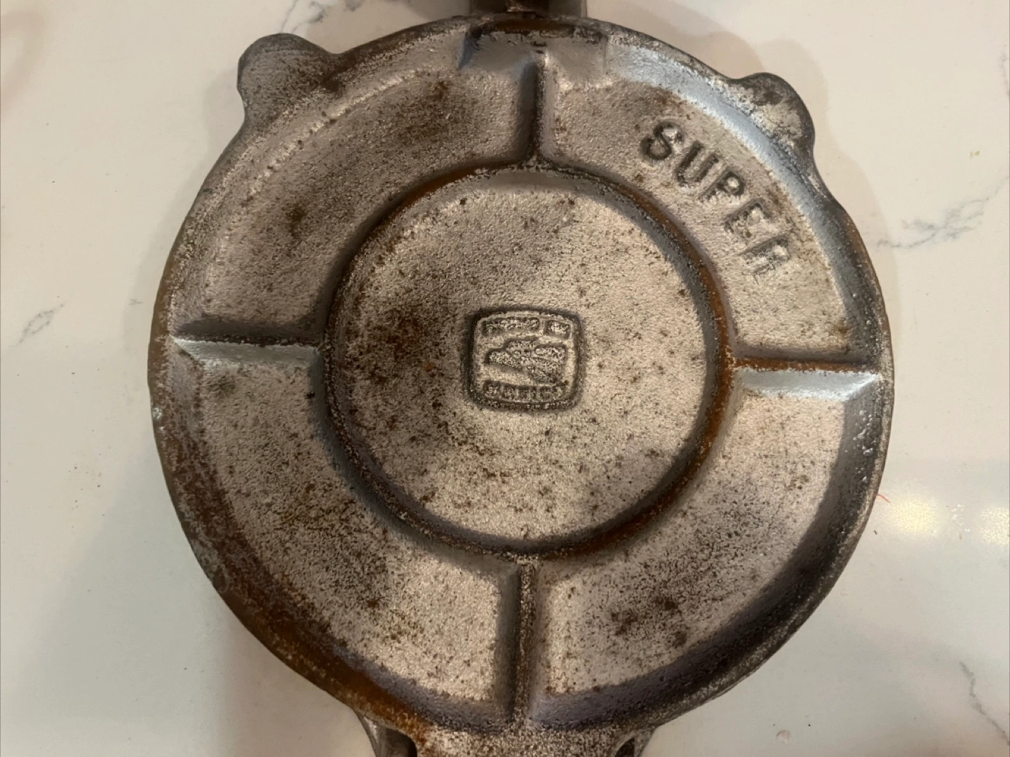 Selling a vintage tortilla press marked 'SUPER'. It's made of cast Iron and 7” has a sturdy handle. Perfect for making homemade tortillas!