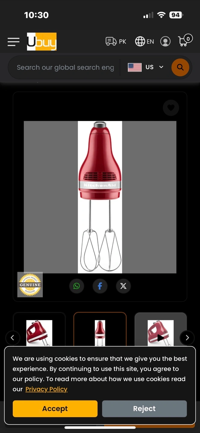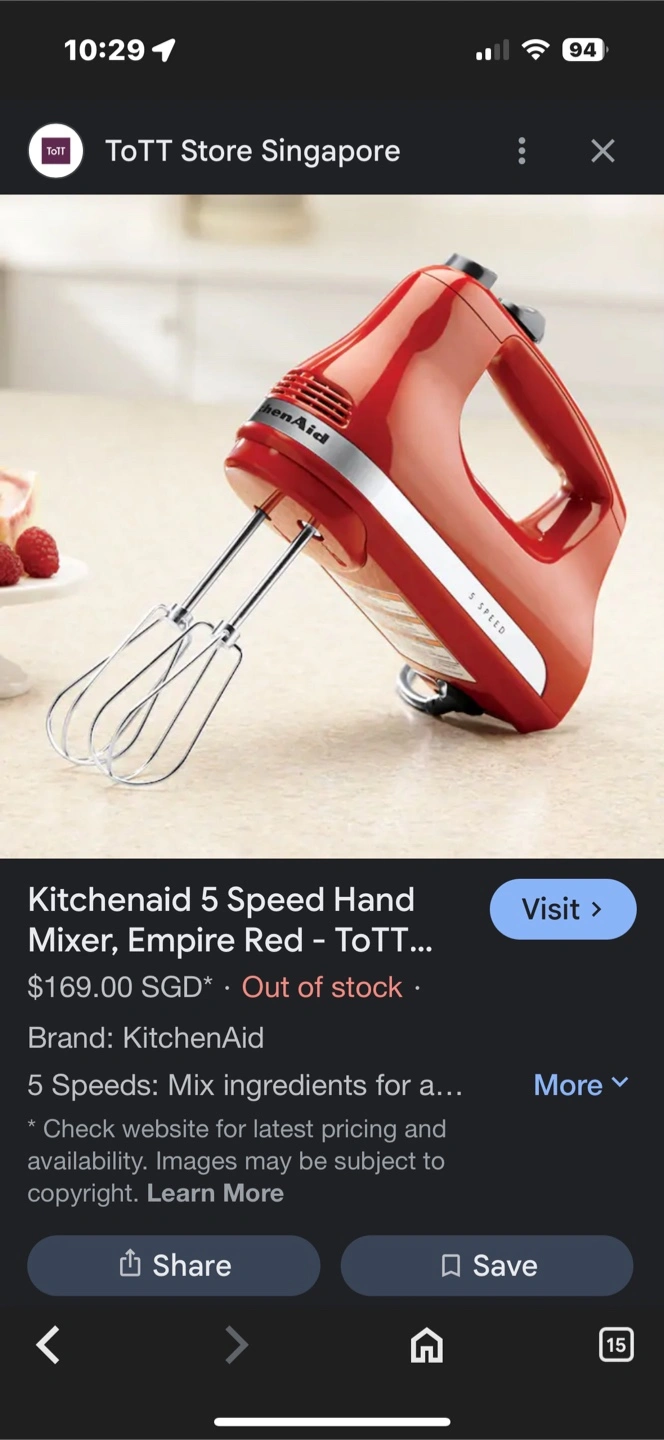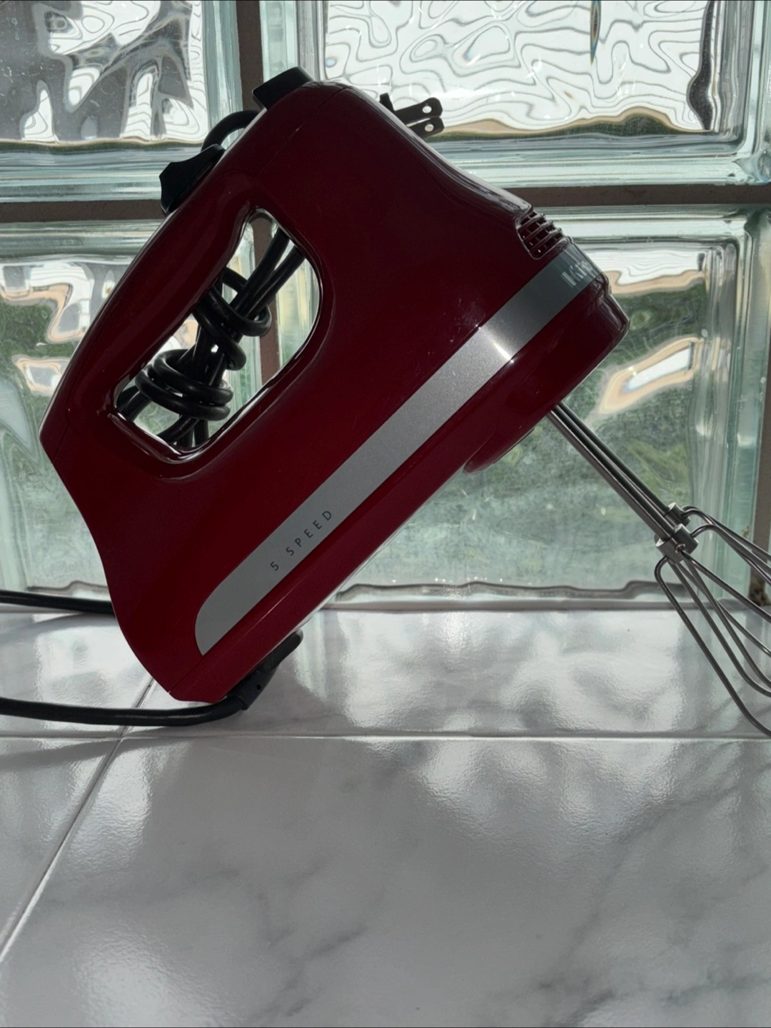 Selling a KitchenAid 5-speed hand mixer in Empire Red! It's in great condition and ready to help with all your baking needs. This mixer is perfect for mixing ingredients for cakes, cookies, and more. It features 5 speeds to give you the control you need for any recipe