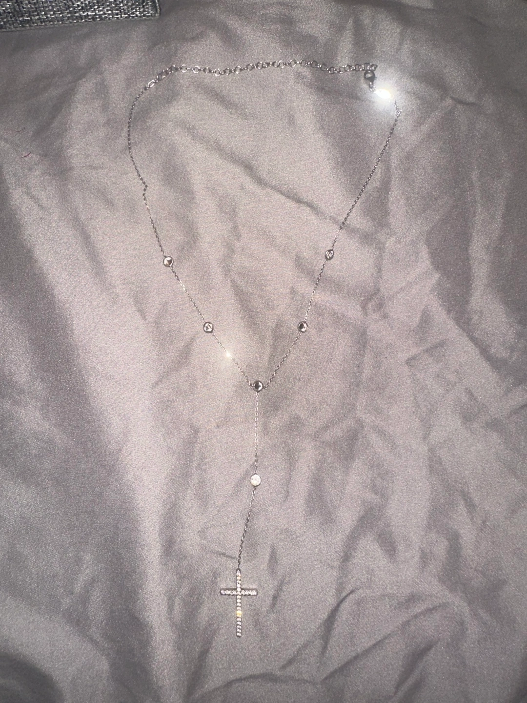 Selling a delicate silver necklace featuring a cross pendant. It's in great condition and adds a touch of elegance to any outfit. The necklace is marked with '925', indicating its silver content