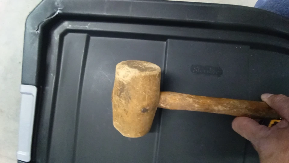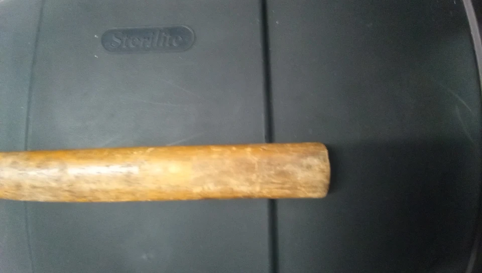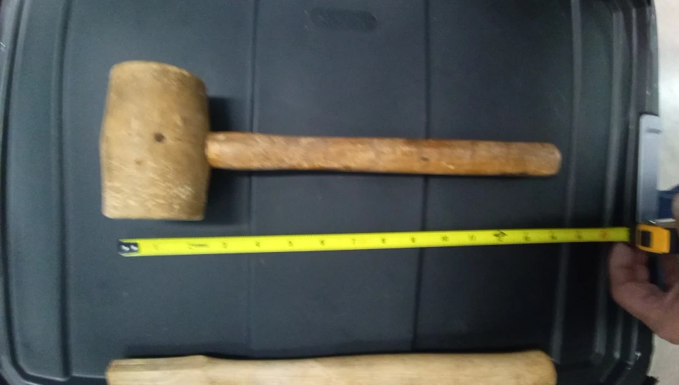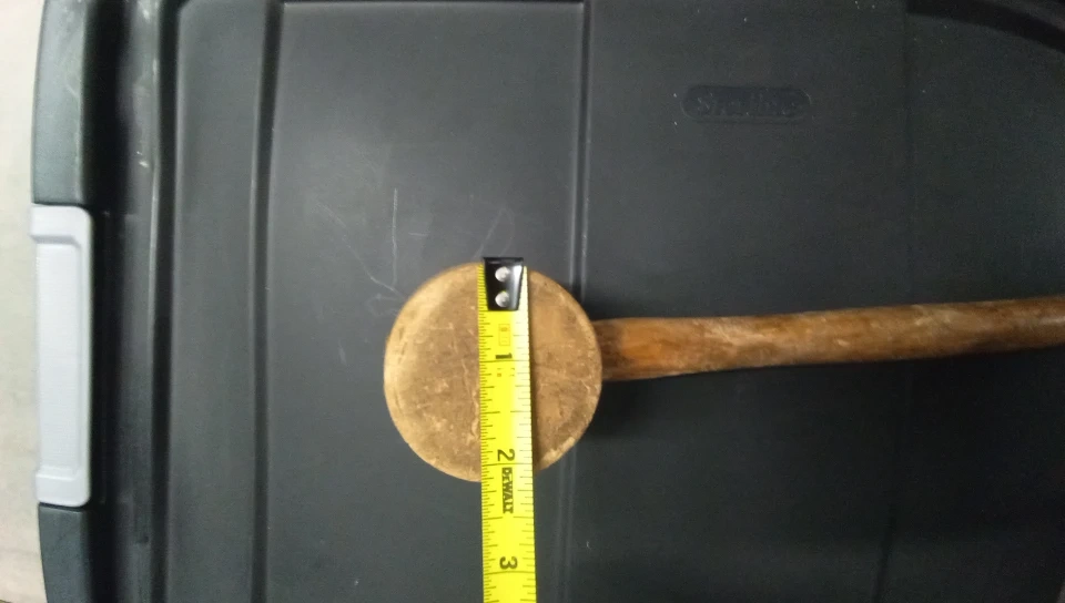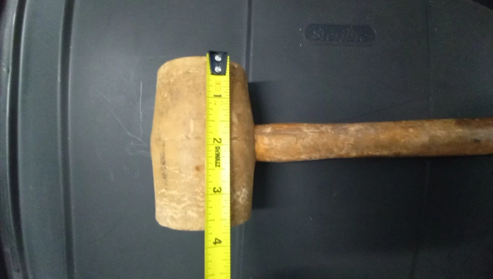 1000+Wooden mallet with a head diameter of approximately 3 inches and a length of about 16 inches. It shows signs of use. Please check out my other 500 plus listings.