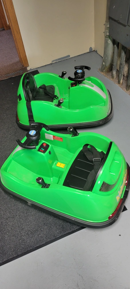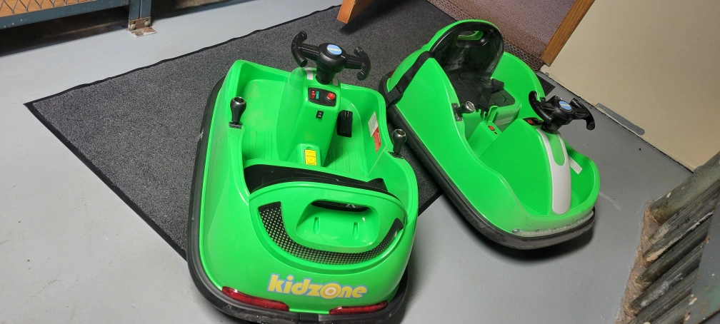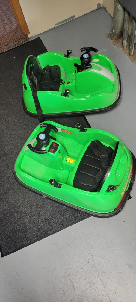 Selling a set of 2 Kidzone ride-on bumper cars! They're in a vibrant green color and ready for some fun. Perfect for kids who love a little excitement
