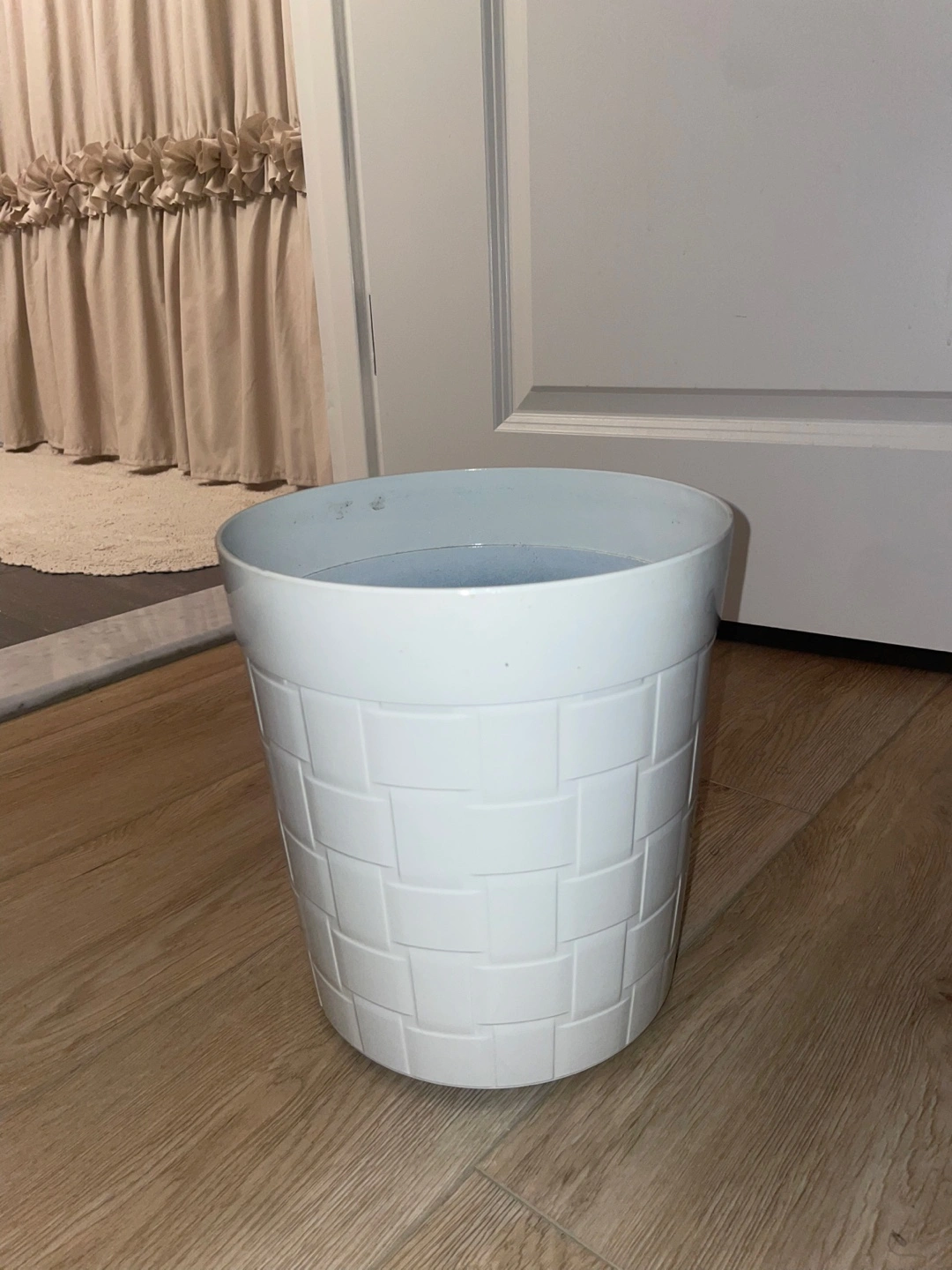 60Selling a white planter with a woven pattern. It's in great condition and ready to add some greenery to your space! 9 inches wide, 9.5 inches deep